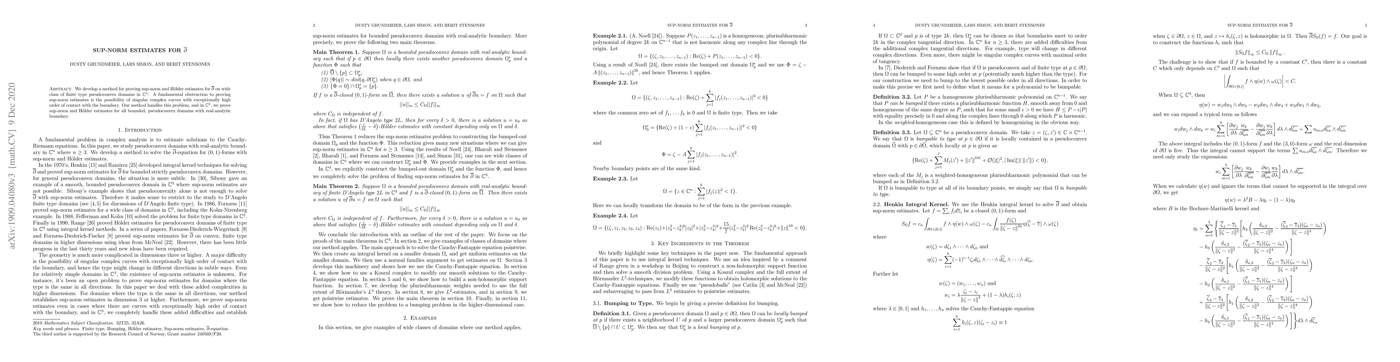 This paper presents a new method for proving sup-norm and H\"older estimates for $\overline{\partial}$ on a wide class of pseudoconvex domains in $\mathbb{C}^n$, addressing the challenge of singular complex curves with high boundary contact, and successfully applying this method to $\mathbb{C}^3$ to achieve estimates for all bounded, pseudoconvex domains with real-analytic boundaries.