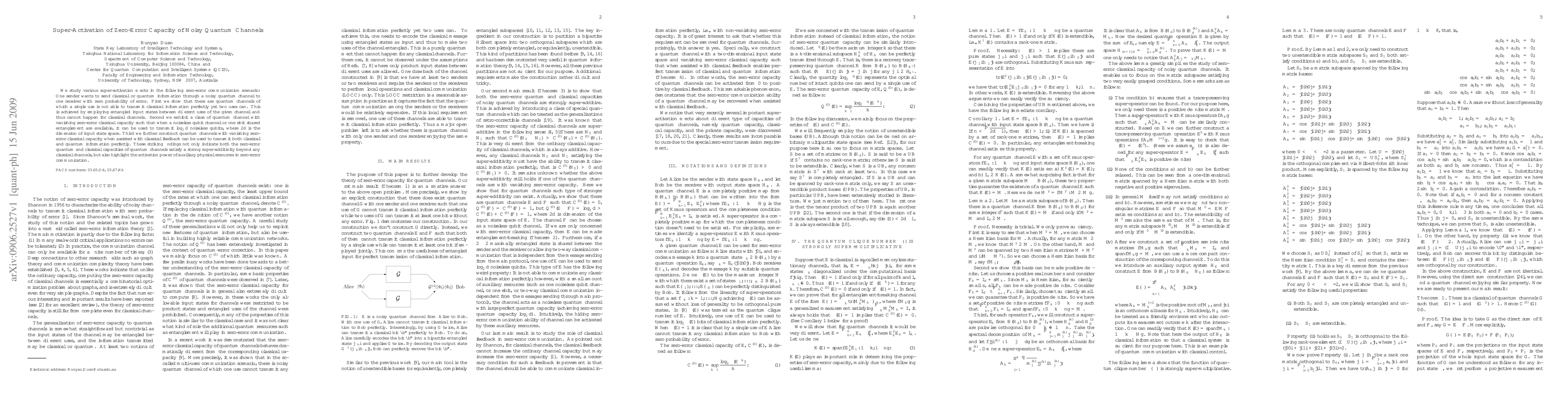 This paper explores super-activation effects in zero-error communication through noisy quantum channels, revealing that quantum channels can transmit classical information perfectly when used multiple times with entangled inputs, a phenomenon absent in classical channels. It also demonstrates how quantum channels with zero classical capacity can transmit quantum information with the aid of noiseless channels or shared entanglement.