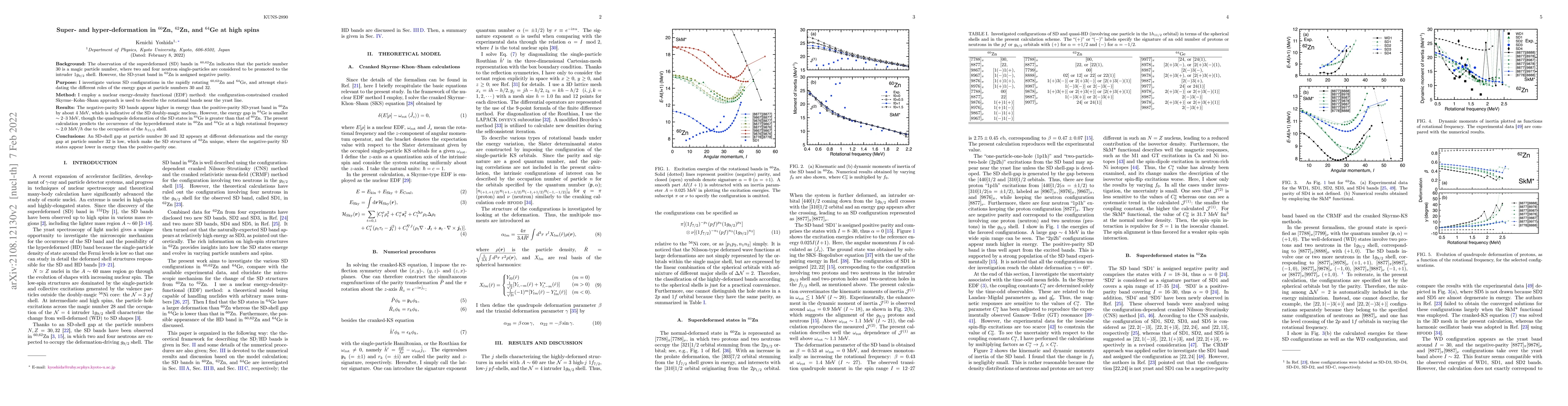 This study investigates super- and hyper-deformation in $^{60}$Zn, $^{62}$Zn, and $^{64}$Ge at high spins using a nuclear energy-density functional method, revealing unique properties of the superdeformed states in $^{62}$Zn with negative parity.