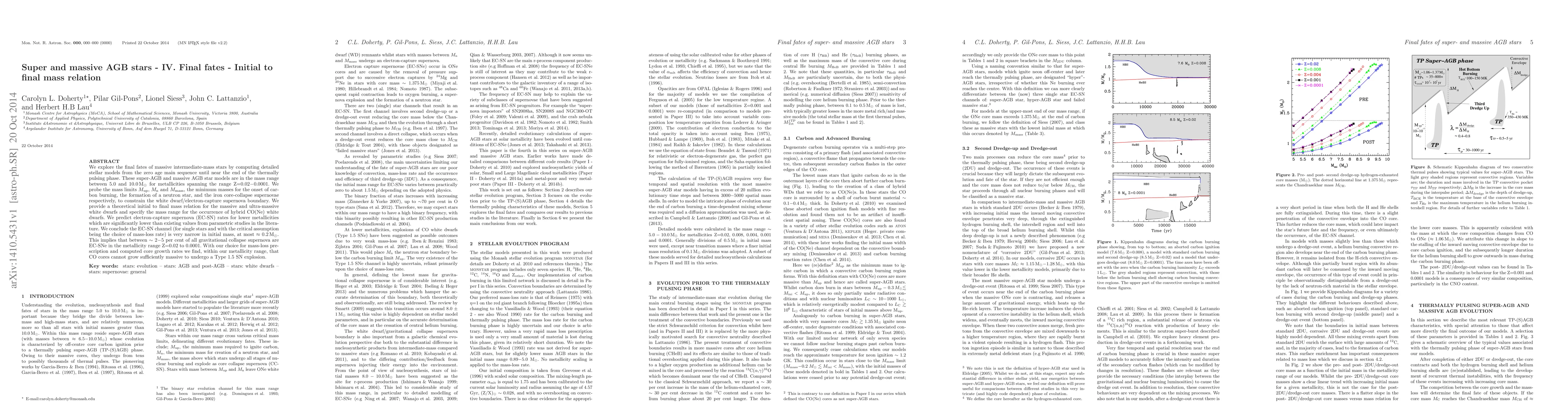 This paper investigates the final evolutionary stages of massive intermediate-mass stars (5.0-10.0 Msun) and determines the mass limits for carbon burning, neutron star formation, and iron core-collapse supernovae. It provides an initial to final mass relation for white dwarfs and predicts significantly lower electron-capture supernova rates than previous studies, concluding that this channel is narrow, accounting for only ~2-5% of gravitational collapse supernovae.
