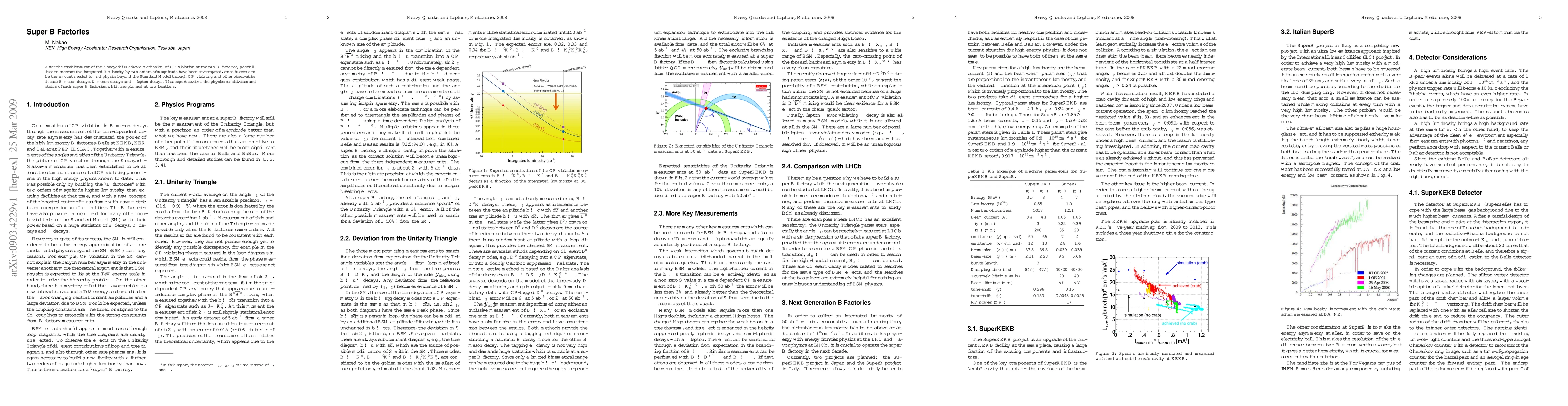 After the establishment of the Kobayashi-Maskawa mechanism of CP violation at the two B factories, possibilities to increase the integrated luminosity by two orders of magnitude have been investigated, since it seems to be the amount needed to find physics beyond the Standard Model through CP violating and other observables in rare B meson decays, D meson decays and tau lepton decays. This report reviews the physics sensitivities and status of such super B factories, which are planned at two locations.