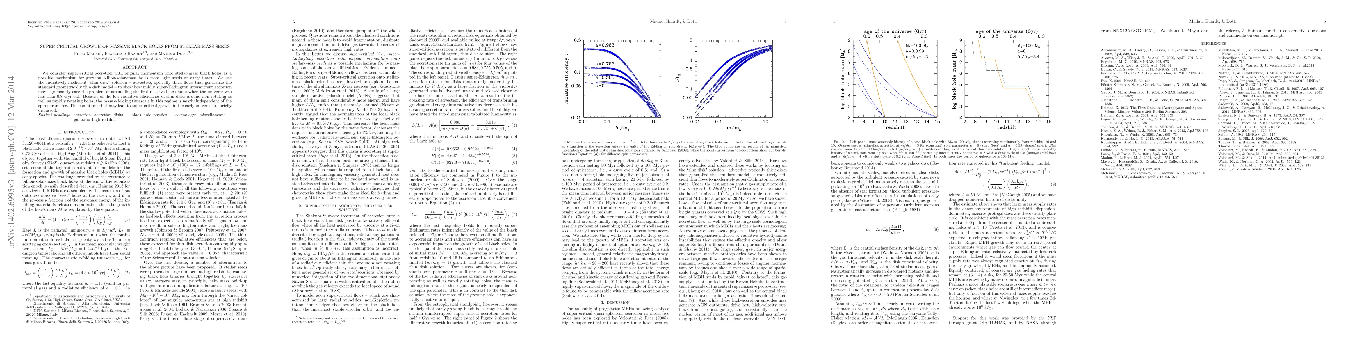 We consider super-critical accretion with angular momentum onto stellar-mass black holes as a possible mechanism for growing billion-solar-mass holes from light seeds at early times. We use the radiatively-inefficient "slim disk" solution -- advective, optically thick flows that generalize the standard geometrically thin disk model -- to show how mildly super-Eddington intermittent accretion may significantly ease the problem of assembling the first massive black holes when the Universe was less than 0.8 Gyr old. Because of the low radiative efficiencies of slim disks around non-rotating as well as rapidly rotating holes, the mass e-folding timescale in this regime is nearly independent of the spin parameter. The conditions that may lead to super-critical growth in the early Universe are briefly discussed.
