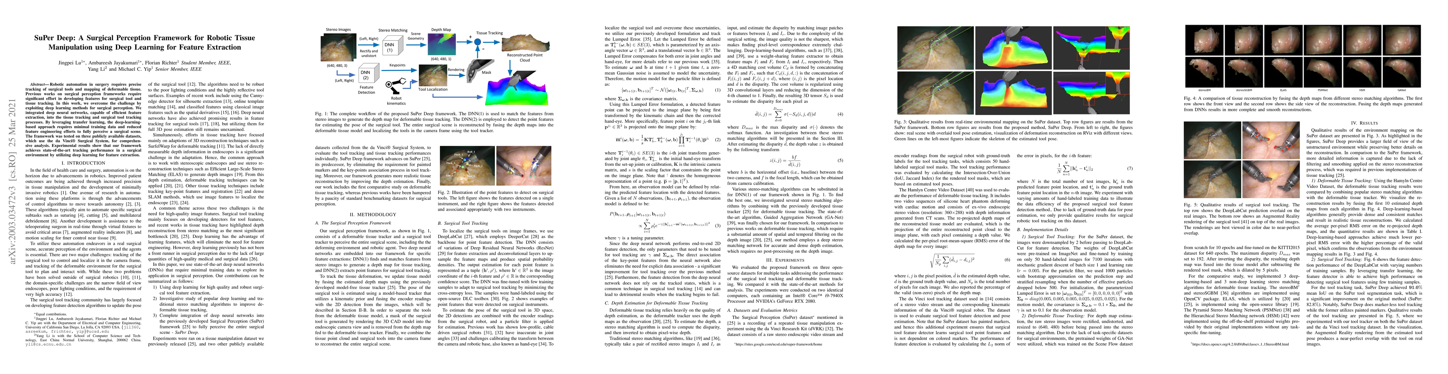 This paper introduces SuPer Deep, a robotic perception framework that uses deep learning for efficient feature extraction in surgical tissue manipulation, reducing the need for manual feature development. The framework leverages transfer learning to achieve state-of-the-art performance in tracking surgical tools and deformable tissue, tested on three public datasets.