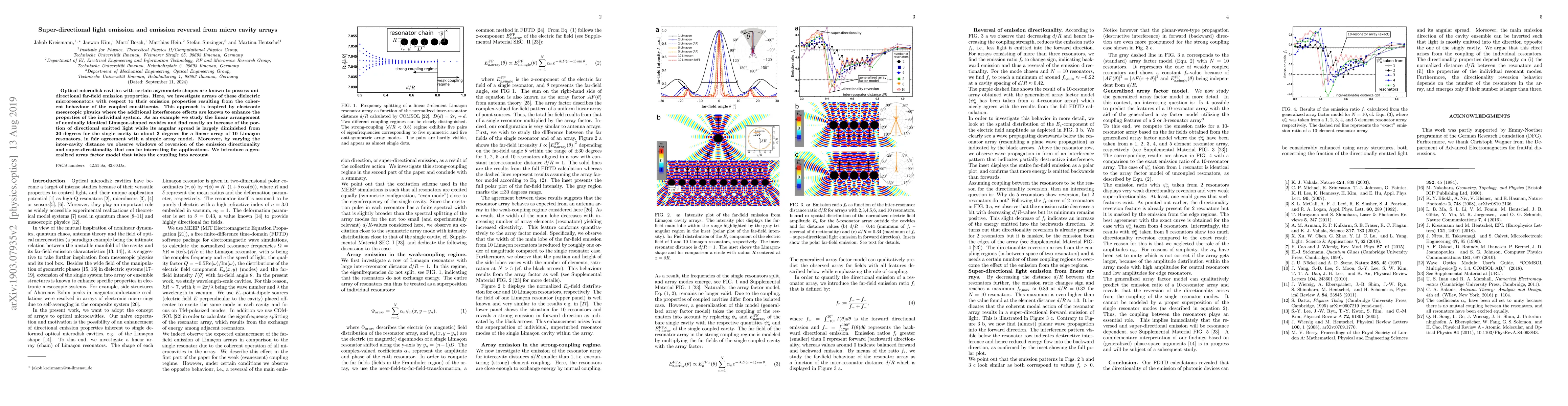Optical microdisk cavities with certain asymmetric shapes are known to possess unidirectional far-field emission properties. Here, we investigate arrays of these dielectric microresonators with respect to their emission properties resulting from the coherent behaviour of the coupled constituents. This approach is inspired by electronic mesoscopic physics where the additional interference effects are known to enhance the properties of the individual system. As an example we study the linear arrangement of nominally identical Lima\c{c}on-shaped cavities and find mostly an increase of the portion of directional emitted light while its angular spread is largely diminished from 20 degrees for the single cavity to about 3 degrees for a linear array of 10 Lima\c{c}on resonators, in fair agreement with a simple array model. Moreover, by varying the inter-cavity distance we observe windows of reversion of the emission directionality and super-directionality that can be interesting for applications. We introduce a generalized array factor model that takes the coupling into account.