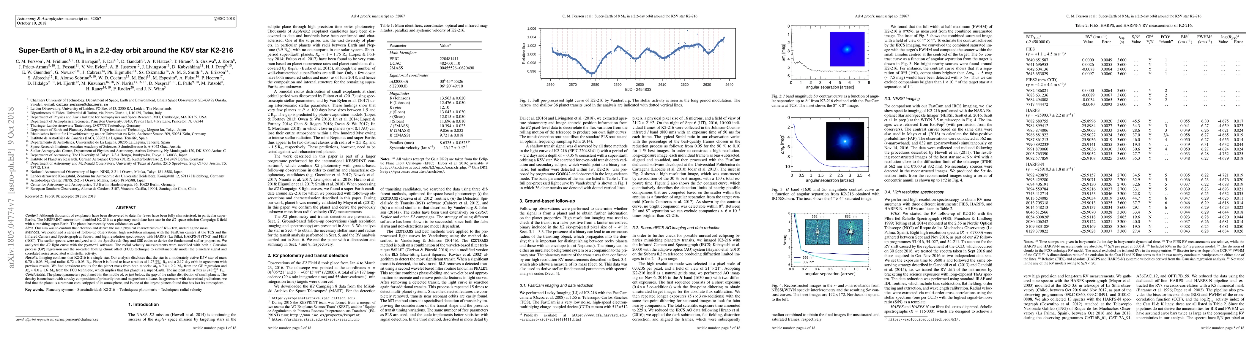 The KESPRINT consortium identified K2-216 as a planetary candidate host star in the K2 space mission Campaign 8 field with a transiting super-Earth. The planet has recently been validated as well. Our aim was to confirm the detection and derive the main physical characteristics of K2-216b, including the mass. We performed a series of follow-up observations: high resolution imaging with the FastCam camera at the TCS, the Infrared Camera and Spectrograph at Subaru, and high resolution spectroscopy with HARPS (ESO, La Silla), HARPS-N (TNG), and FIES (NOT). The stellar spectra were analyzed with the SpecMatch-Emp and SME codes to derive the stellar fundamental properties. We analyzed the K2 light curve with the Pyaneti software. The radial-velocity measurements were modelled with both a Gaussian process (GP) regression and the floating chunk offset (FCO) technique to simultaneously model the planetary signal and correlated noise associated with stellar activity. Imaging confirms that K2-216 is a single star. Our analysis discloses that the star is a moderately active K5V star of mass 0.70+/-0.03 Msun and radius 0.72+/-0.03 Rsun. Planet b is found to have a radius of 1.75+0.17-0.10 Rearth and a 2.17-day orbit in agreement with previous results. We find consistent results for the planet mass from both models: 7.4+/-2.2 Mearth from the GP regression, and 8.0+/-1.6 Mearth from the FCO technique, which implies that this planet is a super-Earth. The planet parameters put planet b in the middle of, or just below, the gap of the radius distribution of small planets. The density is consistent with a rocky composition of primarily iron and magnesium silicate. In agreement with theoretical predictions, we find that the planet is a remnant core, stripped of its atmosphere, and is one of the largest planets found that has lost its atmosphere.