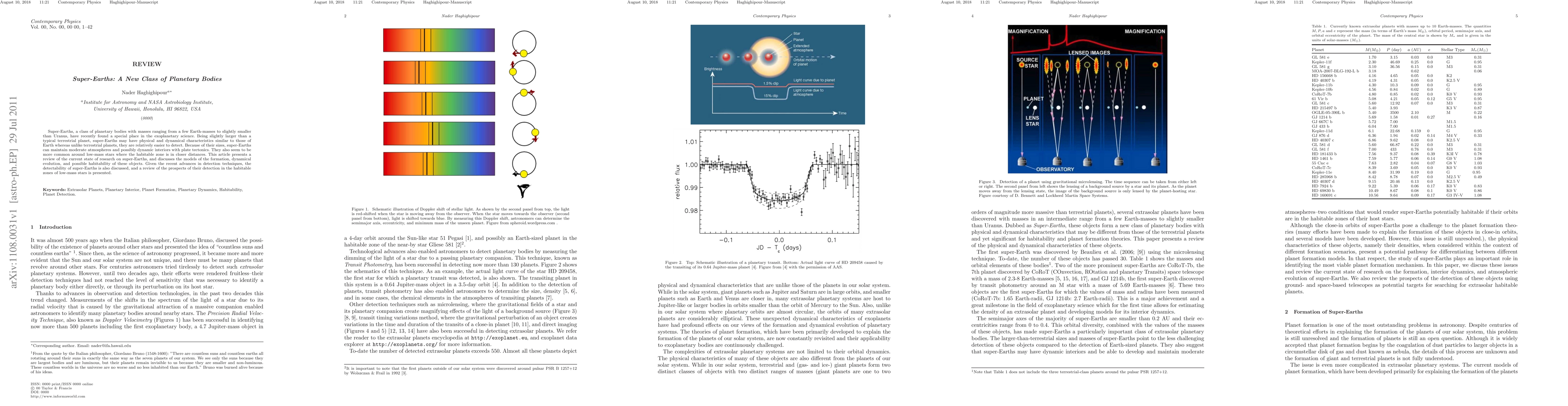 This paper reviews the current understanding of super-Earths, a class of planets with masses between Earth and Uranus, focusing on their formation, evolution, and potential habitability. It highlights the advantages of detecting these planets and discusses their prevalence around low-mass stars.