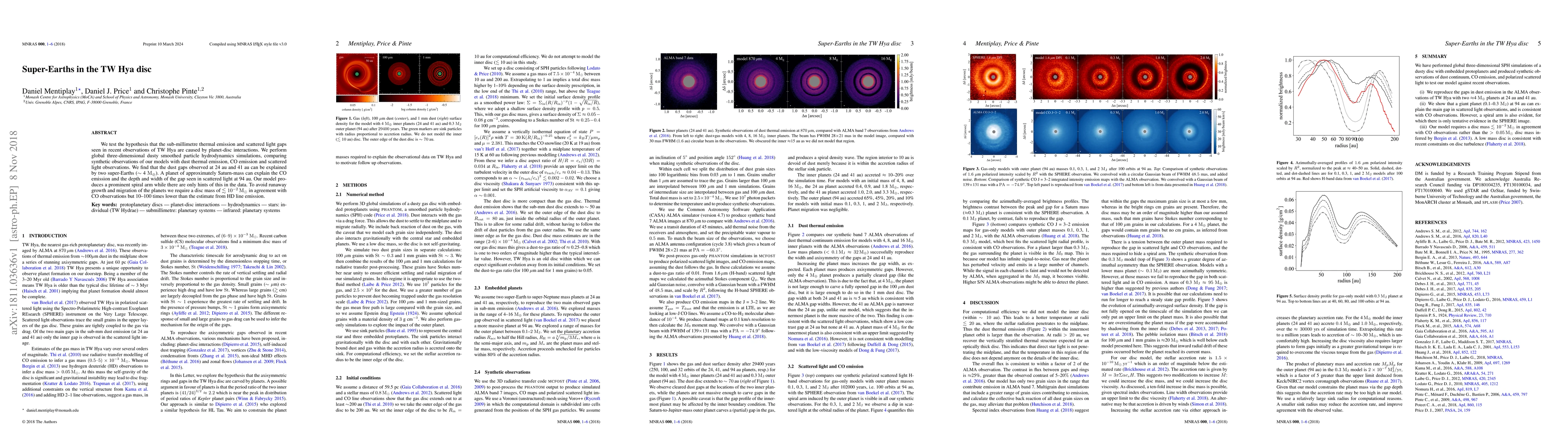 This paper investigates the sub-millimetre gaps in the TW Hya disc, attributing them to planet-disc interactions. The simulations suggest two super-Earths ($\sim 4 \mathrm{M}_{\oplus}$) create the observed dust gaps, while a Saturn-mass planet explains the CO emission and scattered light gap at 94 au.