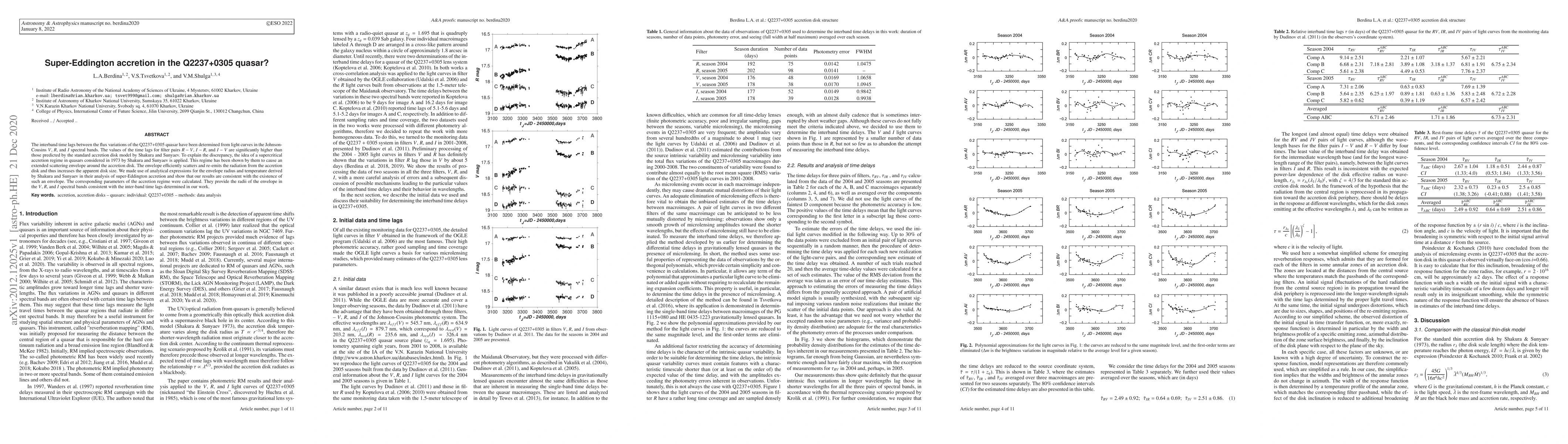 The study of Q2237+0305 quasar reveals significant time lags between its spectral band flux variations, exceeding predictions from the standard accretion disk model. The findings suggest a supercritical accretion regime, supported by the presence of an extended scattering envelope that aligns with the observed time lags.