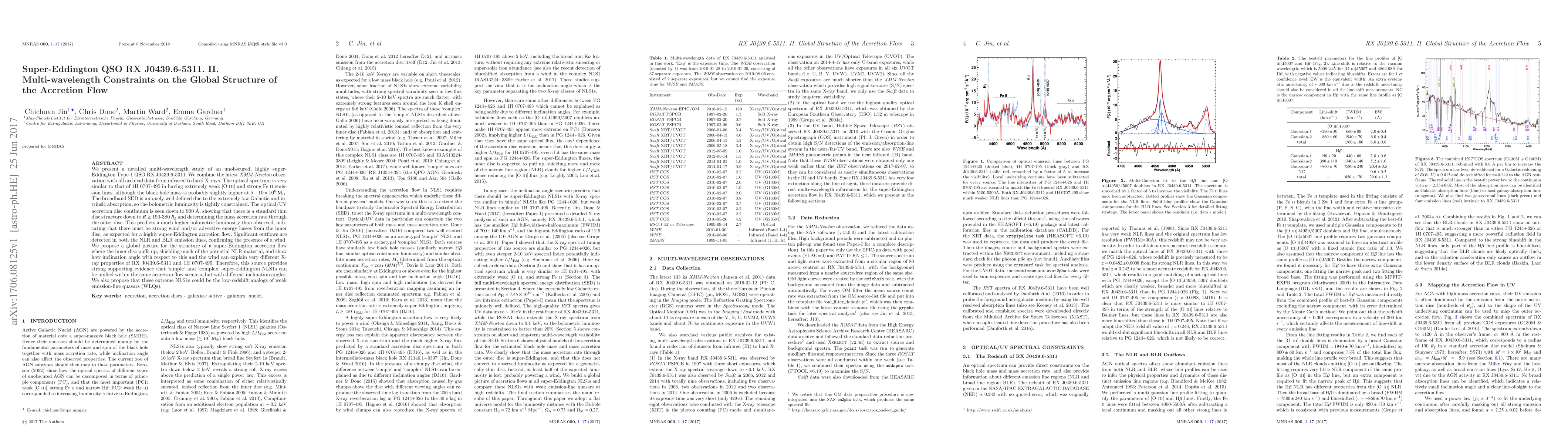 We present a detailed multi-wavelength study of an unobscured, highly super-Eddington Type-1 QSO RX J0439.6-5311. We combine the latest XMM-Newton observation with all archival data from infrared to hard X-rays. The optical spectrum is very similar to that of 1H 0707-495 in having extremely weak [O {\sc iii}] and strong Fe {\sc ii} emission lines, although the black hole mass is probably slightly higher at $5-10 \times10^{6}~\rm M_{\odot}$. The broadband SED is uniquely well-defined due to the extremely low Galactic and intrinsic absorption, so the bolometric luminosity is tightly constrained. The optical/UV accretion disc continuum is seen down to 900 \AA, showing that there is a standard thin disc structure down to $R \ge$ 190-380 $R_{\rm g}$ and determining the mass accretion rate through the outer disc. This predicts a much higher bolometric luminosity than observed, indicating that there must be strong wind and/or advective energy losses from the inner disc, as expected for a highly super-Eddington accretion flow. Significant outflows are detected in both the NLR and BLR emission lines, confirming the presence of a wind. We propose a global picture for the structure of a super-Eddington accretion flow where the inner disc puffs up, shielding much of the potential NLR material, and show how inclination angle with respect to this and the wind can explain very different X-ray properties of RX J0439.6-5311 and 1H 0707-495. Therefore, this source provides strong supporting evidence that `simple' and `complex' super-Eddington NLS1s can be unified within the same accretion flow scenario but with different inclination angles. We also propose that these extreme NLS1s could be the low-redshift analogs of weak emission-line quasars (WLQs).