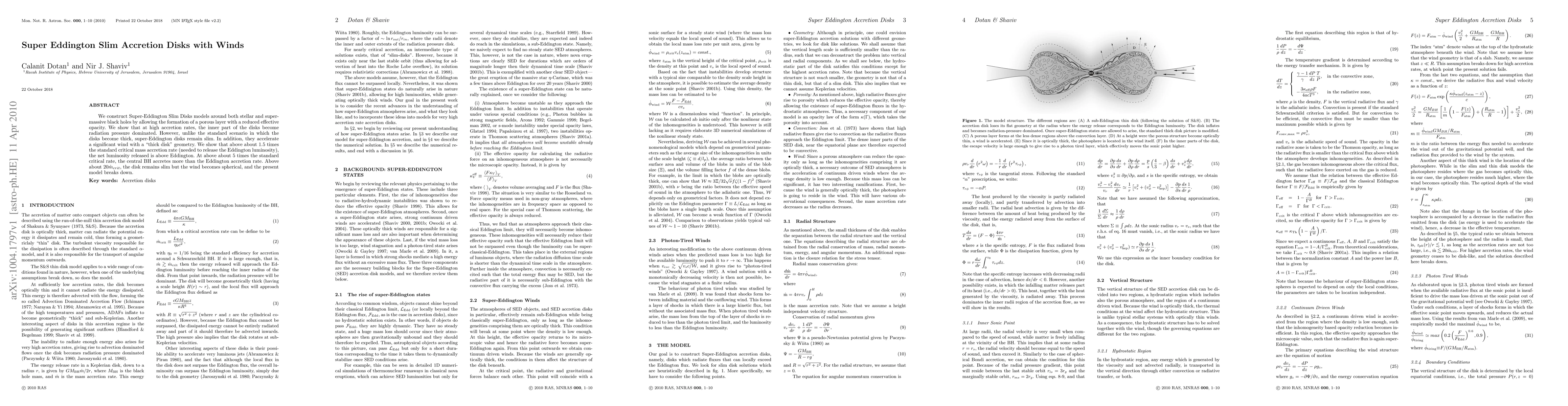 This paper models Super-Eddington slim accretion disks around black holes, demonstrating that high accretion rates lead to radiation pressure dominance without thickening the disk. It also shows that these disks can drive significant winds with a "thick disk" geometry, exceeding Eddington luminosity at high accretion rates.