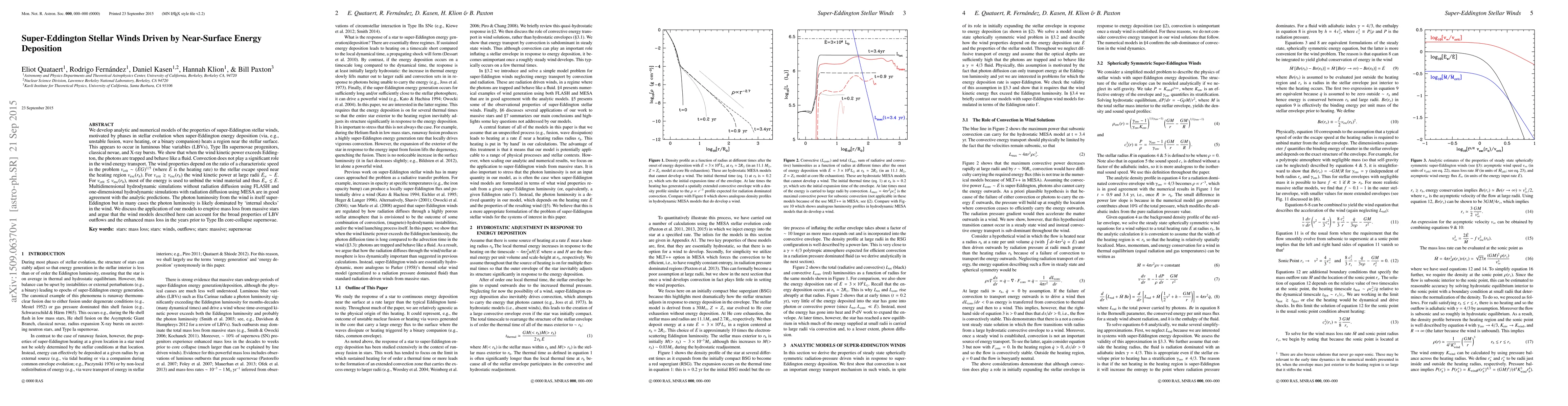 We develop analytic and numerical models of the properties of super-Eddington stellar winds, motivated by phases in stellar evolution when super-Eddington energy deposition (via, e.g., unstable fusion, wave heating, or a binary companion) heats a region near the stellar surface. This appears to occur in luminous blue variables (LBVs), Type IIn supernovae progenitors, classical novae, and X-ray bursts. We show that when the wind kinetic power exceeds Eddington, the photons are trapped and behave like a fluid. Convection does not play a significant role in the wind energy transport. The wind properties depend on the ratio of a characteristic speed in the problem vc ~ (Edot G)^{1/5} (where Edot is the heating rate) to the stellar escape speed near the heating region vesc(r_h). For vc > vesc(r_h) the wind kinetic power at large radii Edot_w ~ Edot. For vc < vesc(r_h), most of the energy is used to unbind the wind material and thus Edot_w < Edot. Multidimensional hydrodynamic simulations without radiation diffusion using FLASH and one-dimensional hydrodynamic simulations with radiation diffusion using MESA are in good agreement with the analytic predictions. The photon luminosity from the wind is itself super-Eddington but in many cases the photon luminosity is likely dominated by `internal shocks' in the wind. We discuss the application of our models to eruptive mass loss from massive stars and argue that the wind models described here can account for the broad properties of LBV outflows and the enhanced mass loss in the years prior to Type IIn core-collapse supernovae.