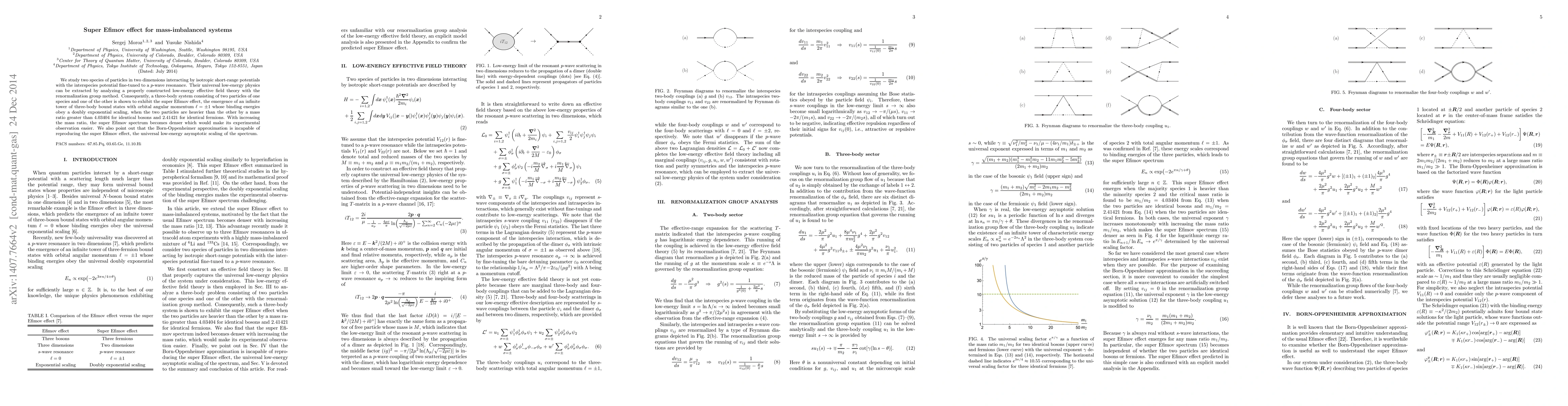 This paper investigates the super Efimov effect in two-dimensional, mass-imbalanced particle systems, revealing an infinite tower of three-body bound states with a doubly exponential binding energy scaling, particularly when the mass ratio exceeds specific thresholds for bosons and fermions. The study uses effective field theory and renormalization group methods to demonstrate the effect's emergence.