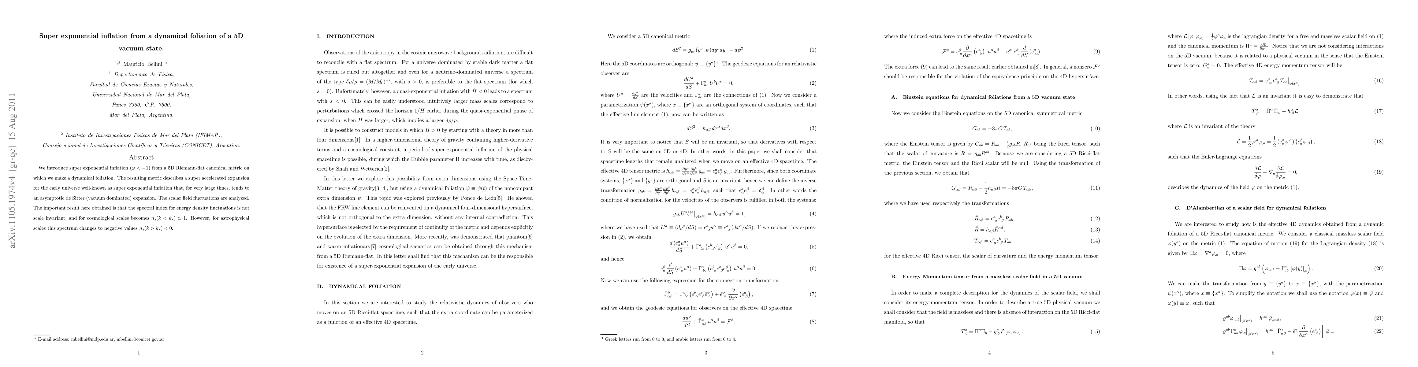 This paper proposes a model of super exponential inflation ($\omega < -1$) derived from a 5D Riemann-flat metric with a dynamical foliation, leading to a super accelerated expansion in the early universe. The study finds that the spectral index for energy density fluctuations deviates from scale invariance, becoming nearly flat for cosmological scales but turning negative for astrophysical scales.