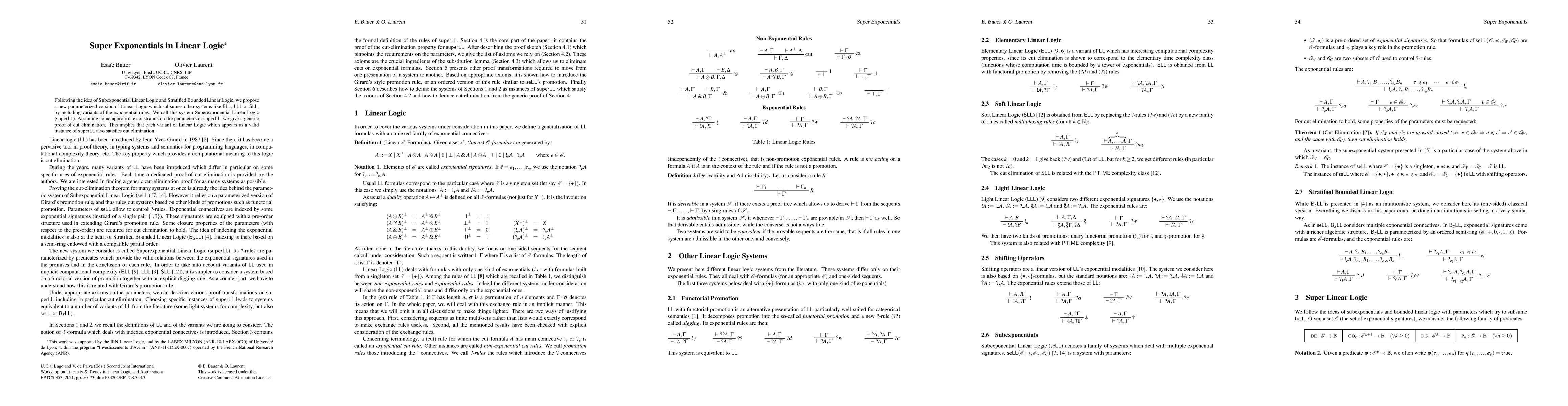 This research introduces Superexponential Linear Logic (superLL), a parameterized version of Linear Logic that unifies systems like ELL, LLL, and SLL. It proves cut elimination for superLL under certain constraints, implying that all encompassed Linear Logic variants also satisfy cut elimination.
