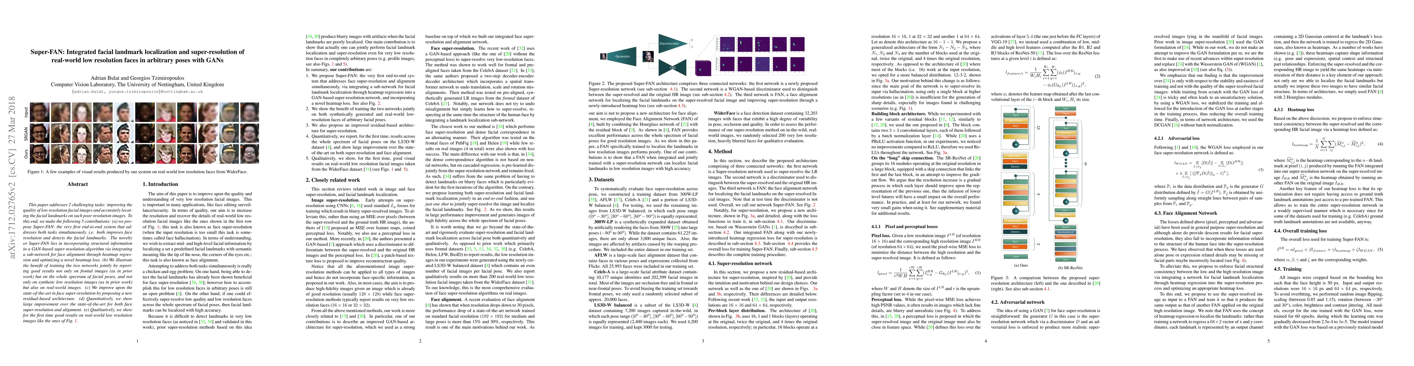 This paper presents Super-FAN, an end-to-end system that improves low-resolution facial images' quality and accurately detects facial landmarks, achieving better results on real-world images than previous methods.