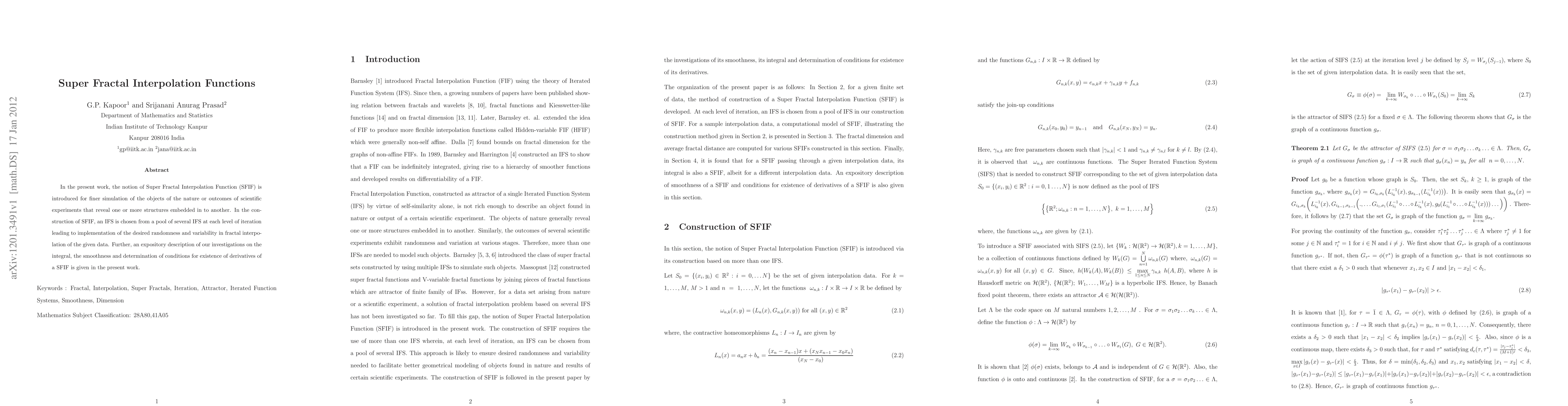 This paper introduces Super Fractal Interpolation Functions (SFIF) for simulating complex natural structures, employing multiple Iterative Function Systems (IFS) at each iteration level for enhanced variability. It also explores the integral, smoothness, and conditions for the existence of derivatives of SFIF.