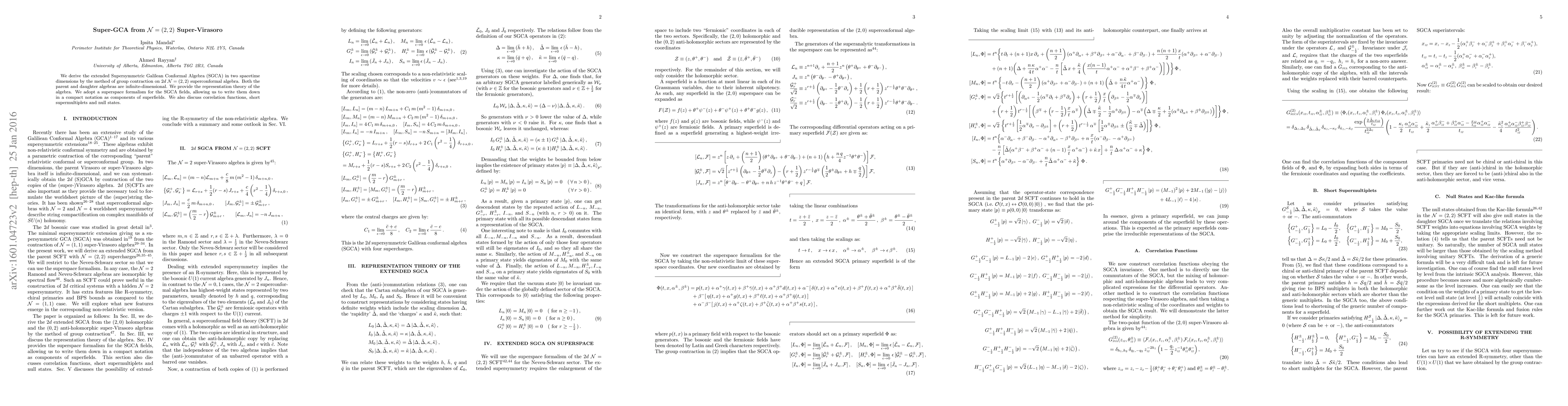 We derive the extended Supersymmetric Galilean Conformal Algebra (SGCA) in two spacetime dimensions by the method of group contraction on $2d$ $\mathcal{N}=(2,2)$ superconformal algebra. Both the parent and daughter algebras are infinite-dimensional. We provide the representation theory of the algebra. We adopt a superspace formalism for the SGCA fields, allowing us to write them down in a compact notation as components of superfields. We also discuss correlation functions, short supermultiplets and null states.
