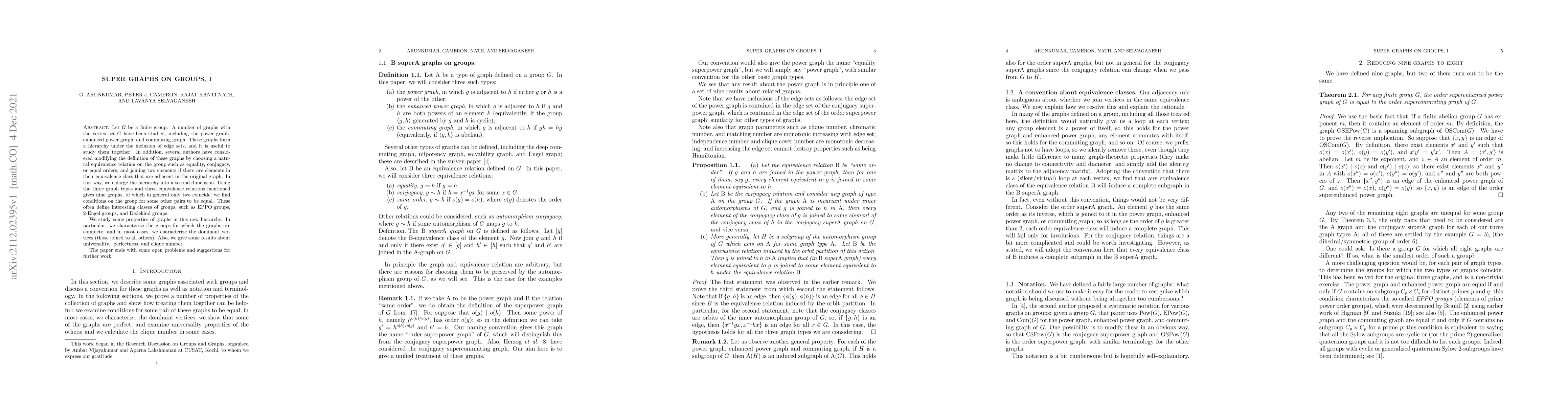 This paper studies a hierarchy of graphs on finite groups, exploring conditions for equality between graphs under different equivalence relations, and characterizing properties such as completeness, dominant vertices, and universality.