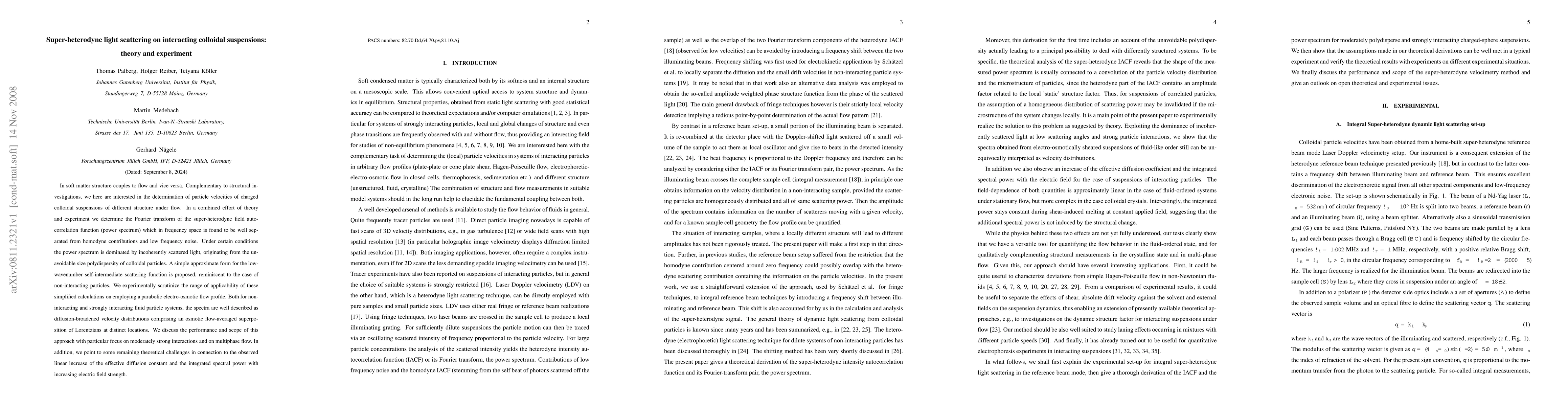 The paper presents a combined theoretical and experimental analysis of super-heterodyne light scattering on interacting colloidal suspensions, providing a method to determine particle velocities under flow conditions.