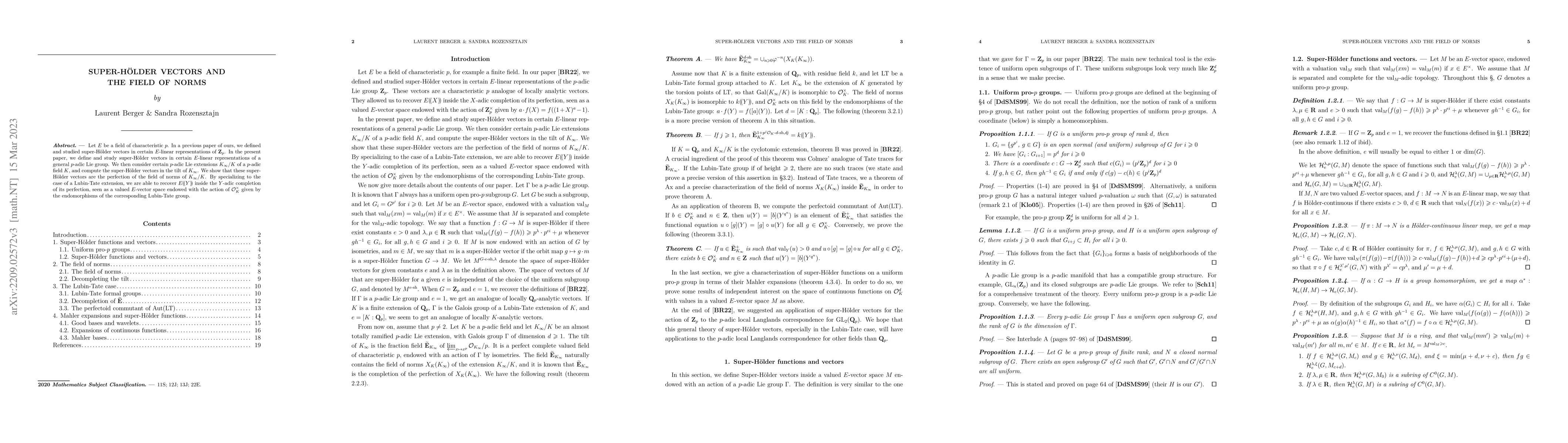 Let E be a field of characteristic p. In a previous paper of ours, we defined and studied super-H\"older vectors in certain E-linear representations of Z_p. In the present paper, we define and study super-H\"older vectors in certain E-linear representations of a general p-adic Lie group. We then consider certain p-adic Lie extensions K_\infty / K of a p-adic field K, and compute the super-H\"older vectors in the tilt of K_\infty. We show that these super-H\"older vectors are the perfection of the field of norms of K_\infty / K. By specializing to the case of a Lubin-Tate extension, we are able to recover E((Y)) inside the Y-adic completion of its perfection, seen as a valued E-vector space endowed with the action of O_K^\times given by the endomorphisms of the corresponding Lubin-Tate group.
