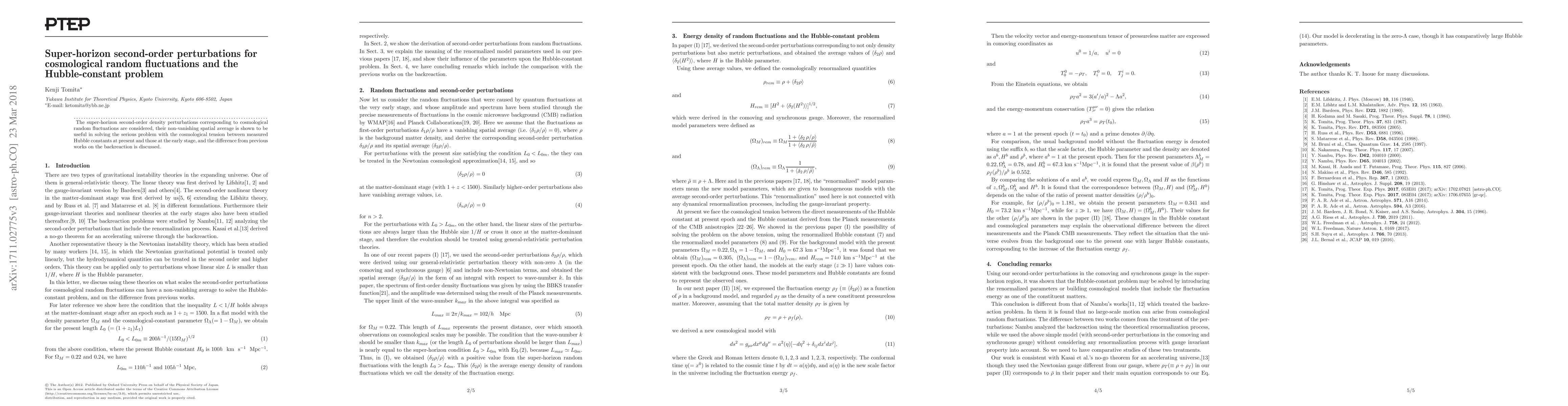 This paper examines super-horizon second-order density perturbations arising from cosmological random fluctuations, demonstrating their non-zero spatial average can help resolve the Hubble-constant discrepancy between current and early-stage measurements, differing from prior backreaction studies.