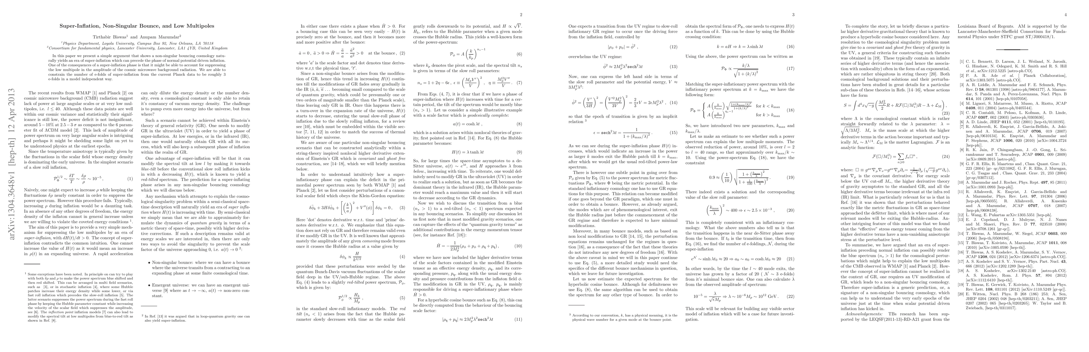 In this paper we present a simple argument that shows a non-singular bouncing cosmology naturally yields an era of super-inflation which can precede the phase of normal potential driven inflation. One of the consequences of a super-inflation phase is that it might be able to account for suppressing the low multipole in the amplitude of the cosmic microwave background radiation. We are able to constrain the number of e-folds of super-inflation from the current Planck data to be roughly 3 e-folds in a model independent way.