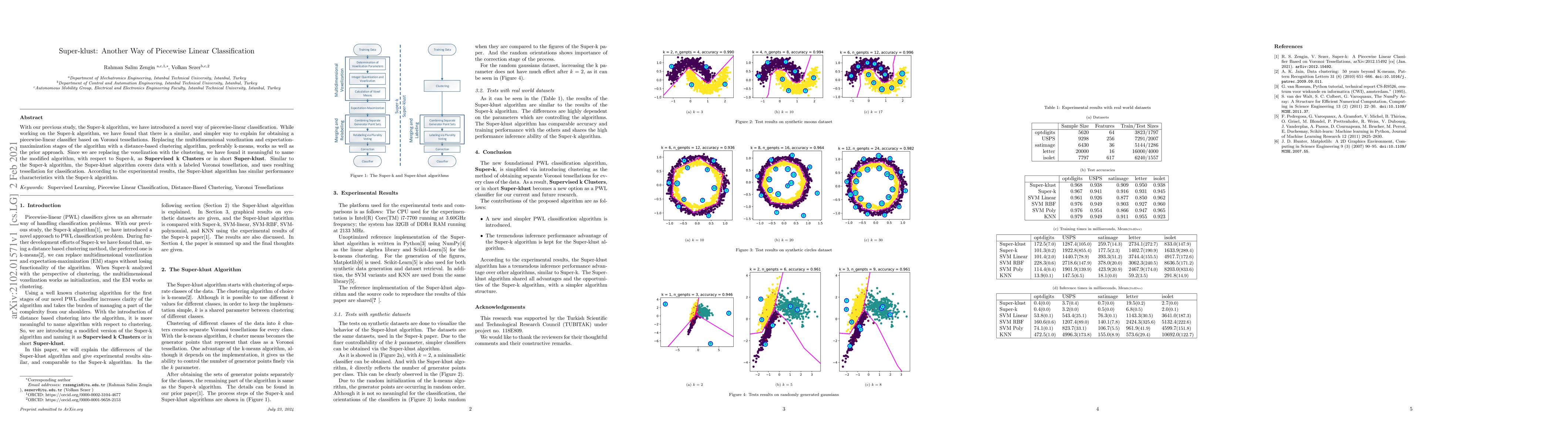 The Super-klust algorithm offers a simpler alternative to the Super-k algorithm for piecewise-linear classification, utilizing k-means clustering instead of multidimensional voxelization and expectation-maximization, achieving comparable performance.