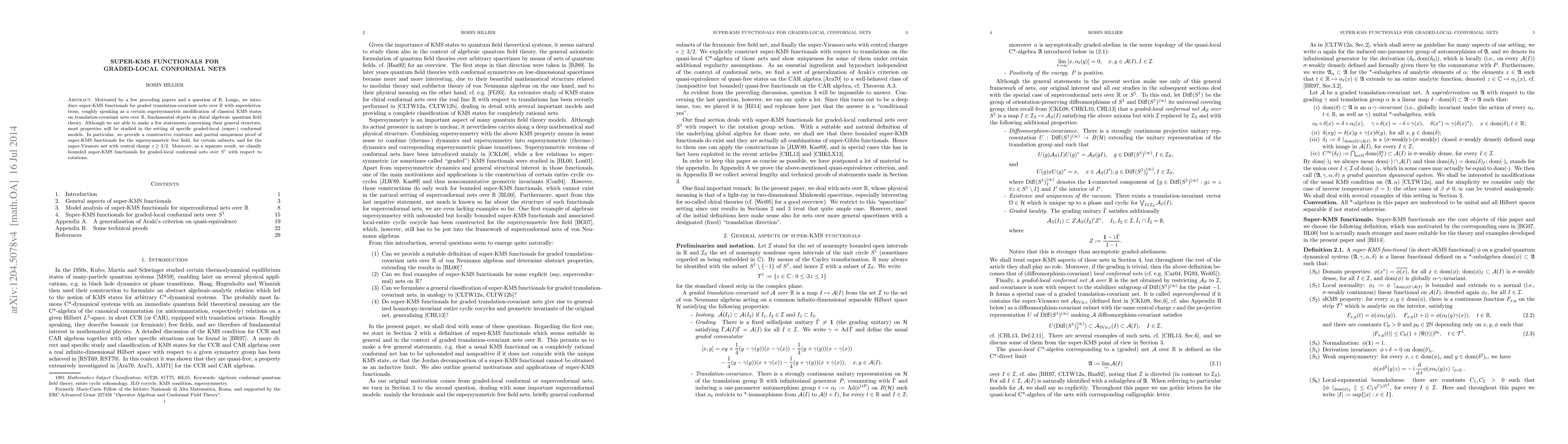 This paper introduces super-KMS functionals for graded-local conformal nets, extending classical KMS states to include supersymmetry. It provides existence and uniqueness proofs for specific models, including the supersymmetric free field and the super-Virasoro net, and classifies bounded super-KMS functionals for graded-local conformal nets over a circle.