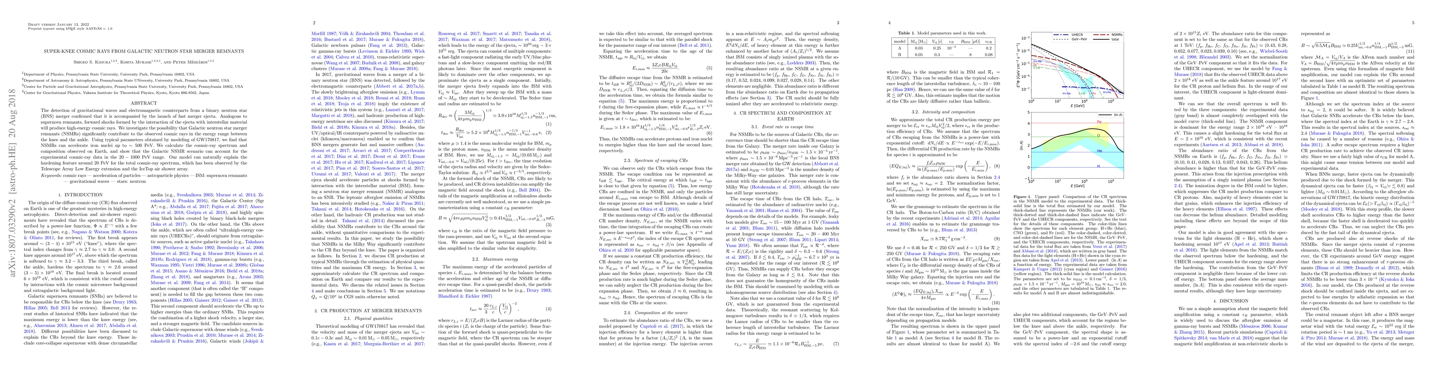 This paper investigates whether Galactic neutron star merger remnants (NSMRs) can significantly contribute to cosmic rays in the energy range between the knee and the ankle. The study finds that NSMRs can accelerate iron nuclei to energies up to ~500 PeV, potentially explaining the observed cosmic-ray spectrum and the hardening feature around 20 PeV.