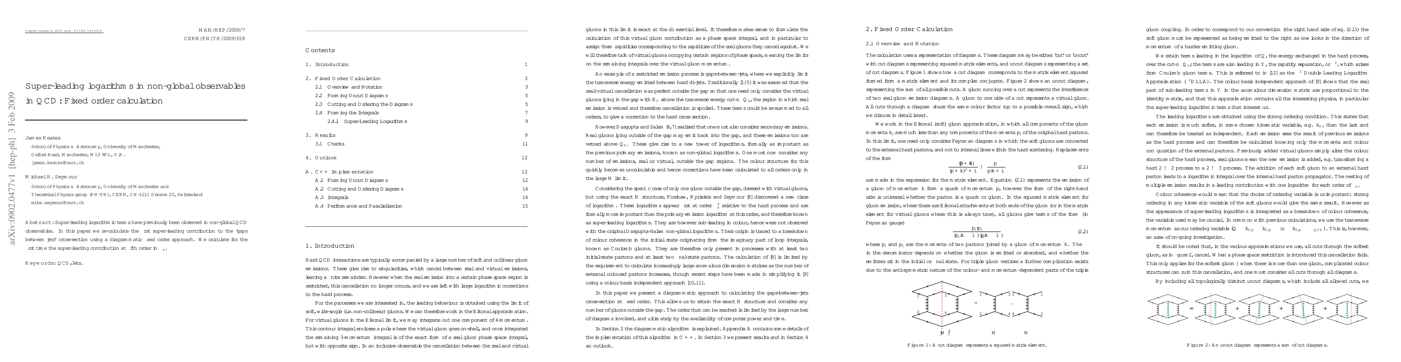 This paper recalculates the first super-leading logarithmic contribution to the 'gaps between jets' cross-section in QCD using a fixed order approach, determining the super-leading term for the first time at the fifth order in alpha_s. The study focuses on non-global observables and their super-leading logarithmic behavior.
