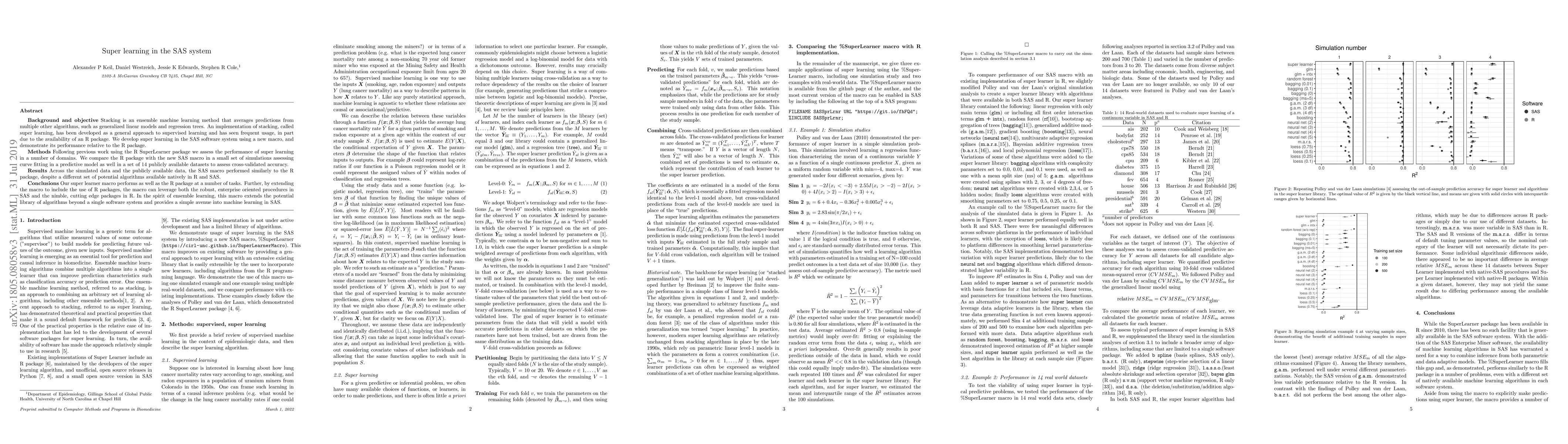 A new macro for super learning was developed in SAS and compared to the popular R package SuperLearner, showing similar performance across various datasets and tasks.