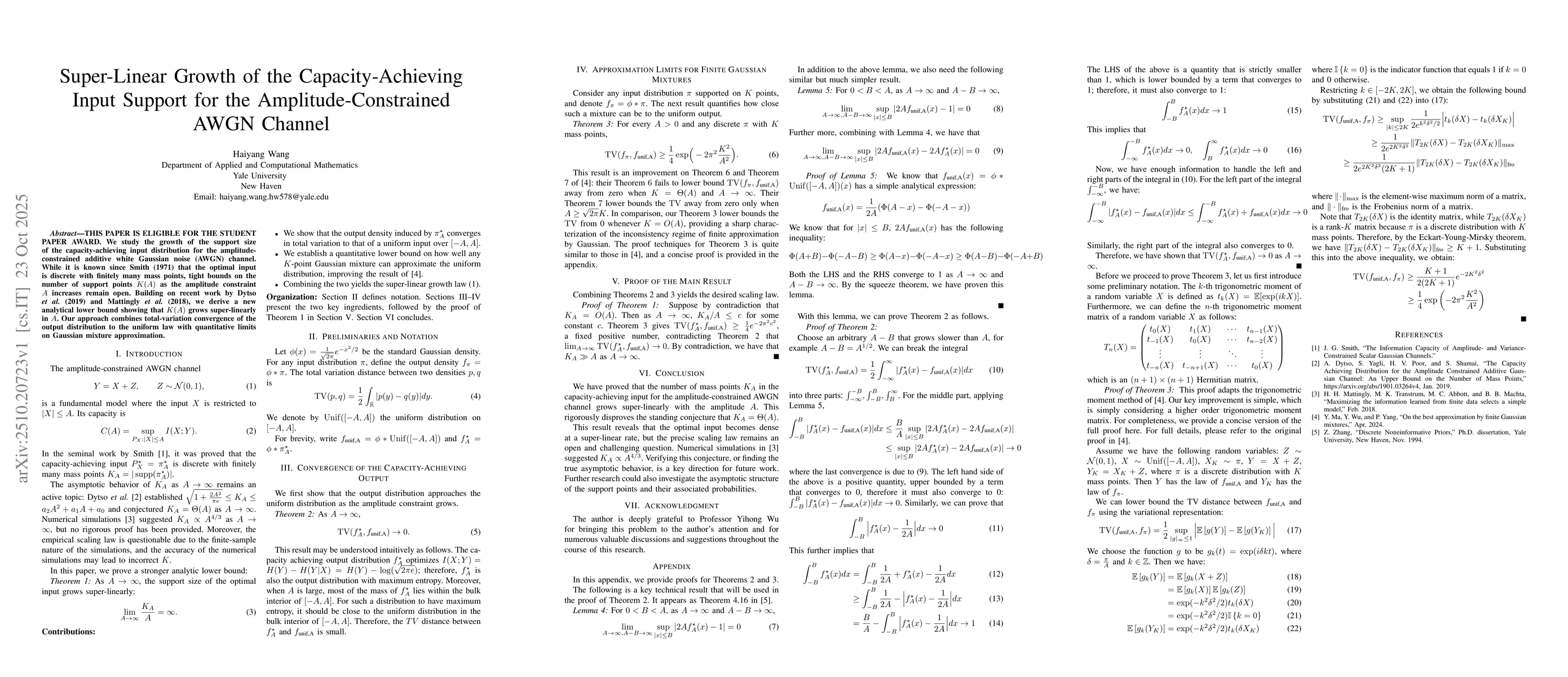 We study the growth of the support size of the capacity-achieving input distribution for the amplitude-constrained additive white Gaussian noise (AWGN) channel. While it is known since Smith (1971) that the optimal input is discrete with finitely many mass points, tight bounds on the number of support points $K(A)$ as the amplitude constraint $A$ increases remain open. Building on recent work by Dytso \emph{et al.} (2019) and Mattingly \emph{et al.} (2018), we derive a new analytical lower bound showing that $K(A)$ grows super-linearly in $A$. Our approach combines total-variation convergence of the output distribution to the uniform law with quantitative limits on Gaussian mixture approximation.
