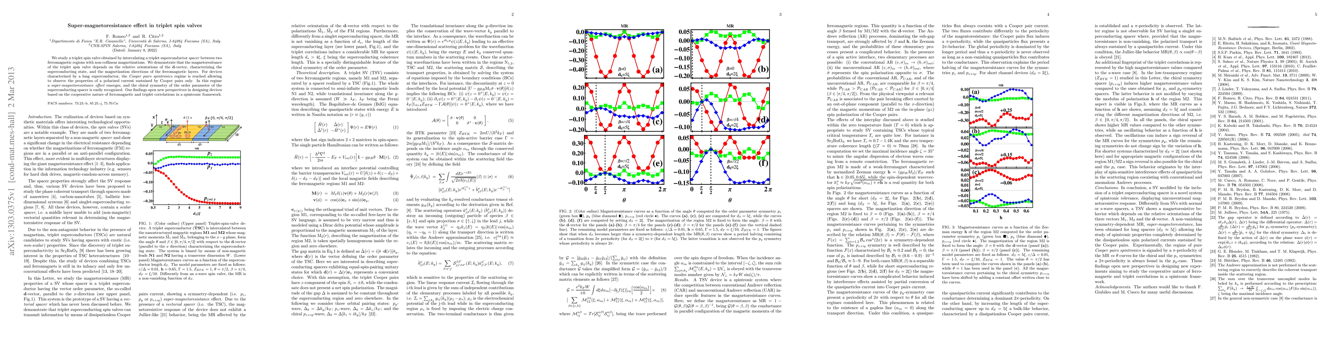 This paper investigates the super-magnetoresistance effect in triplet spin valves, demonstrating that the magnetoresistance depends on the alignment of the superconducting d-vector and ferromagnetic layer magnetizations. In long superconductor devices, a Cooper pairs spintronics regime is observed, revealing a super-magnetoresistance effect and chiral symmetry of the superconducting order parameter, suggesting novel potential for spintronic devices.