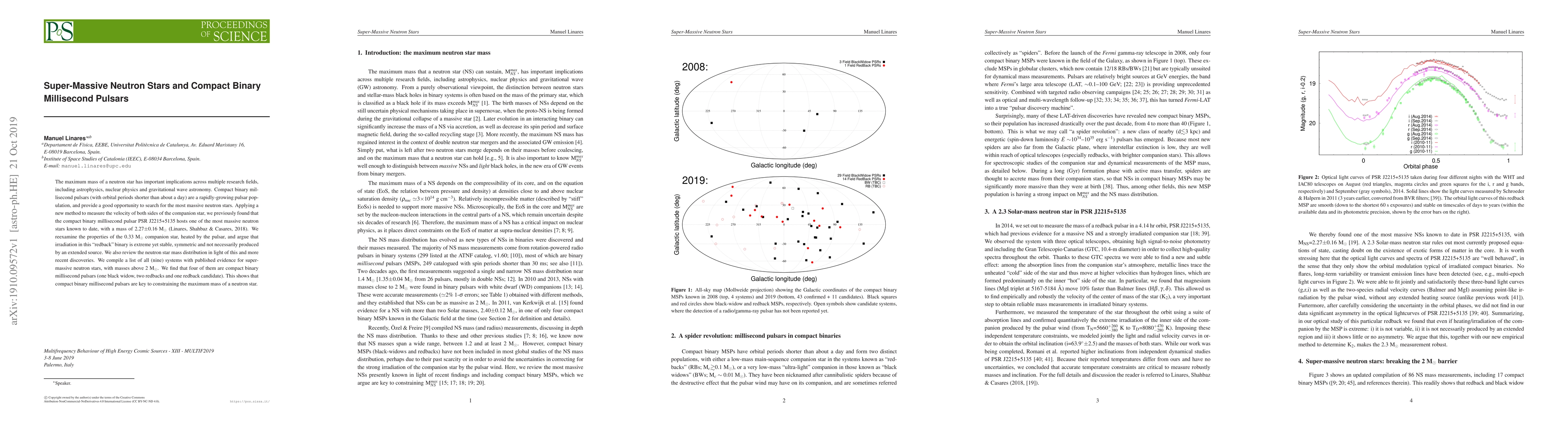 This paper investigates the maximum mass of neutron stars, focusing on the compact binary millisecond pulsar PSR J2215+5135, which hosts one of the most massive neutron stars discovered, at 2.27±0.16 M$_\odot$. The study highlights the importance of these systems in constraining neutron star mass limits and identifies nine systems with super-massive neutron stars, four of which are compact binary millisecond pulsars.