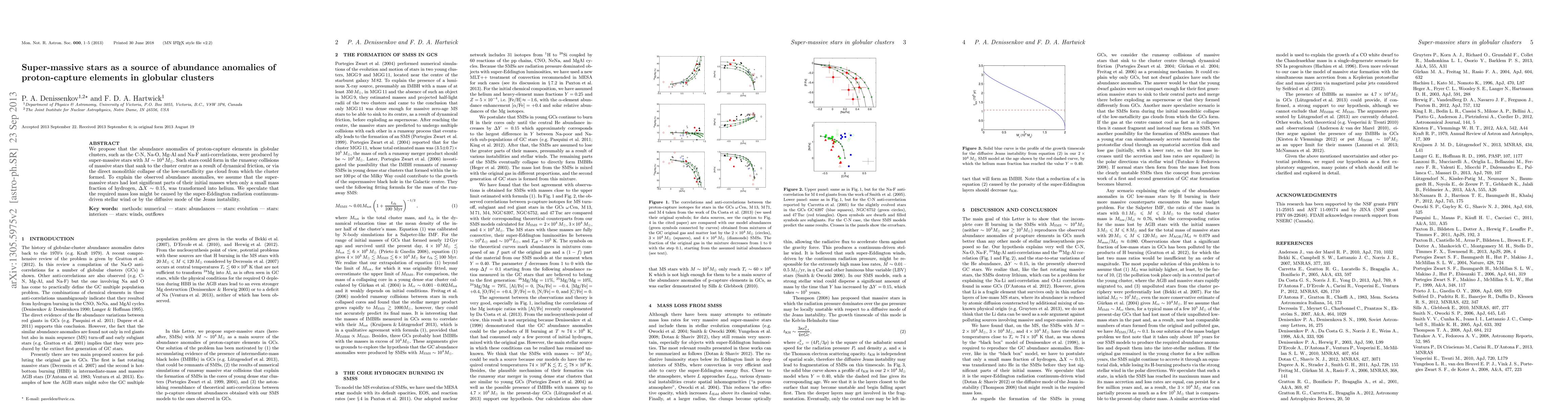 This paper proposes that super-massive stars, formed through runaway collisions or direct collapse of low-metallicity gas clouds, could generate the observed abundance anomalies of proton-capture elements in globular clusters by losing significant mass before transforming a small fraction of hydrogen into helium. The suggested mass loss mechanisms include super-Eddington radiation-driven winds or Jeans instability.