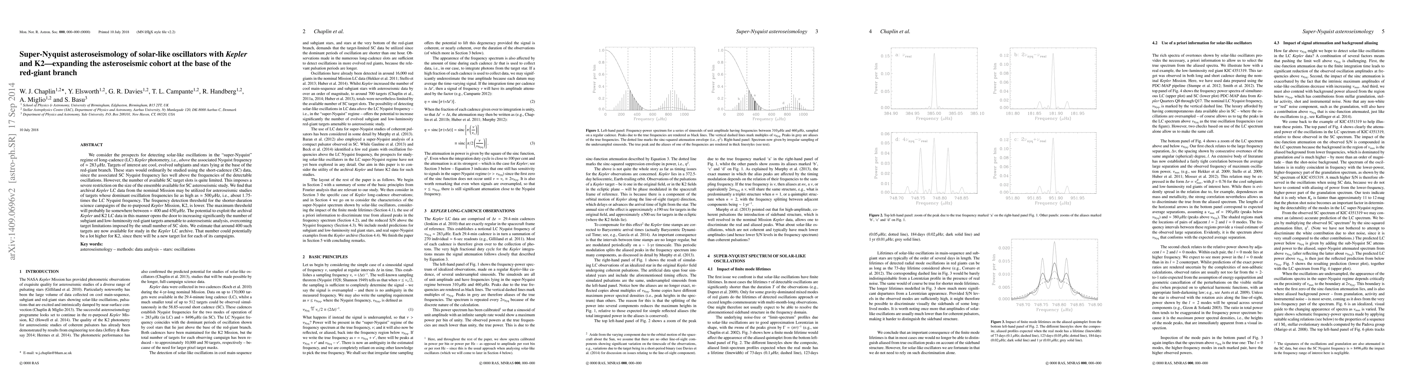 We consider the prospects for detecting solar-like oscillations in the "super-Nyquist" regime of long-cadence (LC) Kepler photometry, i.e., above the associated Nyquist frequency of approximately 283 {\mu}Hz. Targets of interest are cool, evolved subgiants and stars lying at the base of the red-giant branch. These stars would ordinarily be studied using the short-cadence (SC) data, since the associated SC Nyquist frequency lies well above the frequencies of the detectable oscillations. However, the number of available SC target slots is quite limited. This imposes a severe restriction on the size of the ensemble available for SC asteroseismic study.We find that archival Kepler LC data from the nominal Mission may be utilized for asteroseismic studies of targets whose dominant oscillation frequencies lie as high as approximately 500 {\mu}Hz, i.e., about 1.75- times the LC Nyquist frequency. The frequency detection threshold for the shorter-duration science campaigns of the re-purposed Kepler Mission, K2, is lower. The maximum threshold will probably lie somewhere between approximately 400 and 450 {\mu}Hz. The potential to exploit the archival Kepler and K2 LC data in this manner opens the door to increasing significantly the number of subgiant and low-luminosity red-giant targets amenable to asteroseismic analysis, overcoming target limitations imposed by the small number of SC slots.We estimate that around 400 such targets are now available for study in the Kepler LC archive. That number could potentially be a lot higher for K2, since there will be a new target list for each of its campaigns.
