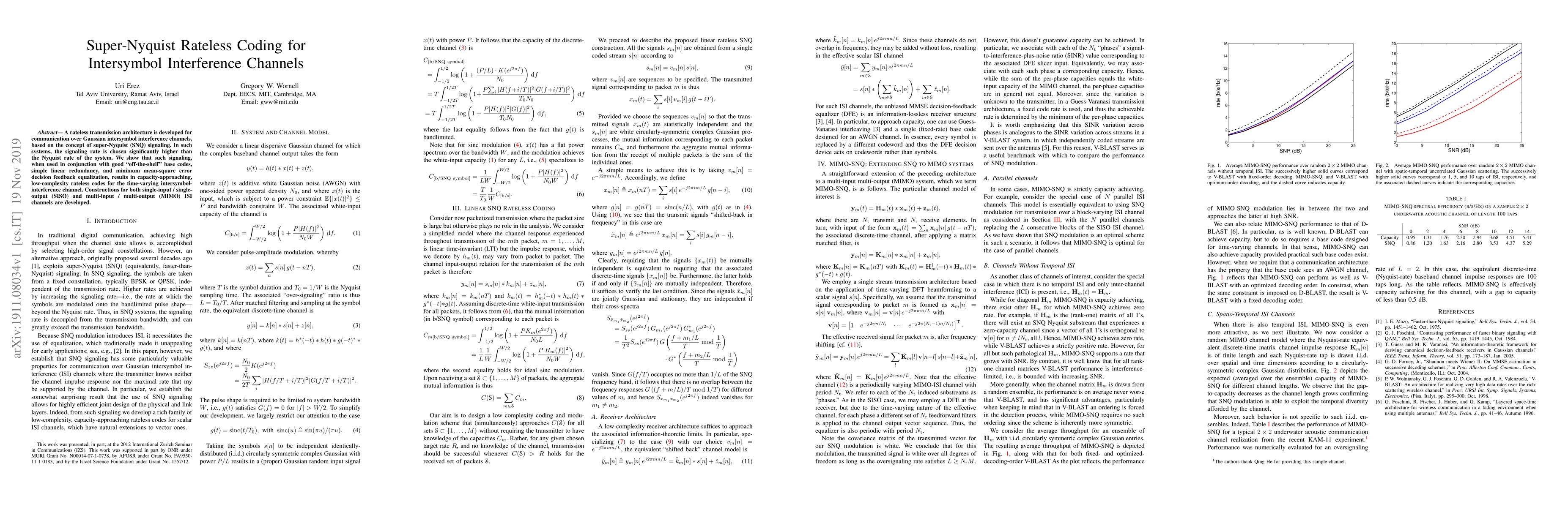 This paper proposes a rateless coding scheme for Gaussian intersymbol interference channels using super-Nyquist signaling, achieving near-capacity performance with low-complexity techniques for both SISO and MIMO systems. The approach combines off-the-shelf base codes, linear redundancy, and decision feedback equalization.