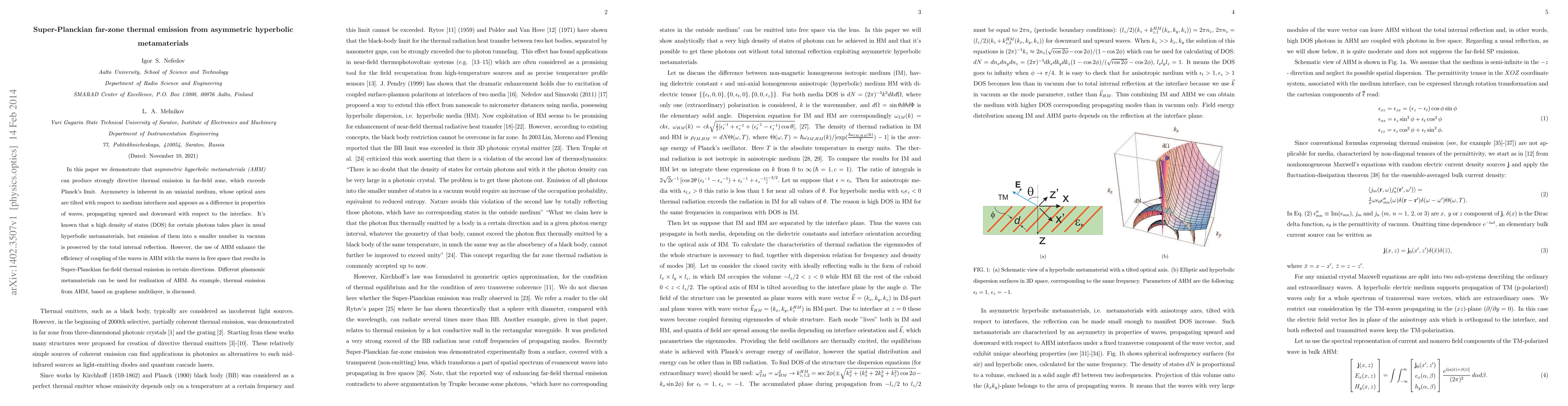The paper presents a theoretical framework for understanding and enhancing thermal emission using asymmetric hyperbolic metamaterials, combining insights from anisotropic media and total internal reflection.