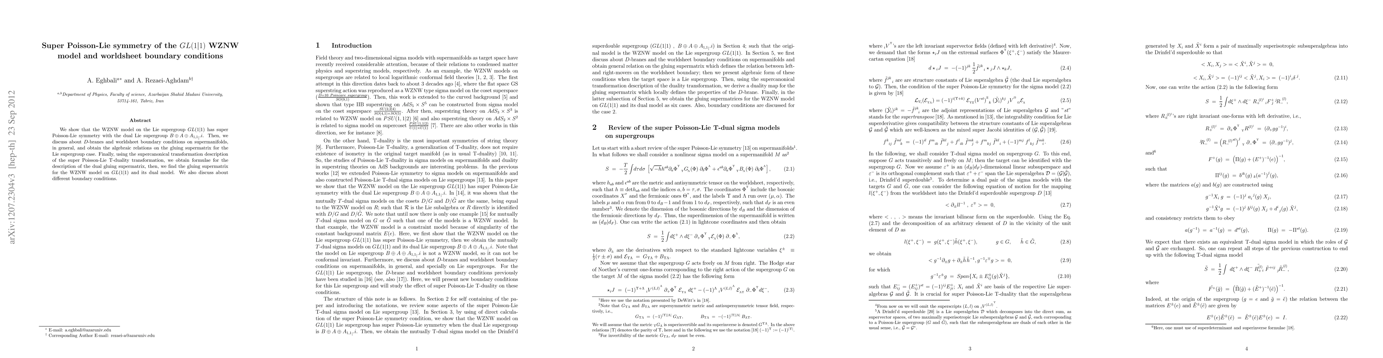 The paper demonstrates the super Poisson-Lie symmetry of the GL(1|1) WZNW model and explores worldsheet boundary conditions, deriving algebraic relations for gluing supermatrices and describing dual models using supercanonical transformations. It also examines various boundary conditions in the context of supermanifolds.