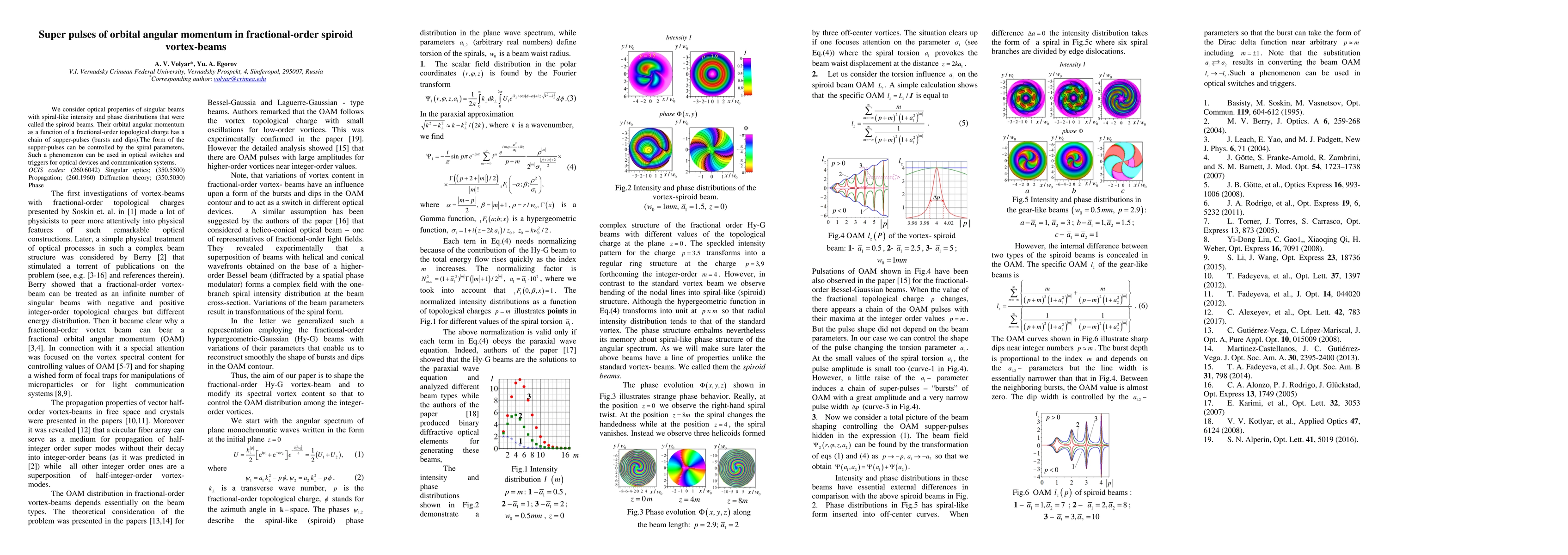 Research investigates the formation of super pulses in orbital angular momentum of spiroid vortex-beams with controlled spiral parameters, which could enable optical switches and triggers for communication systems.