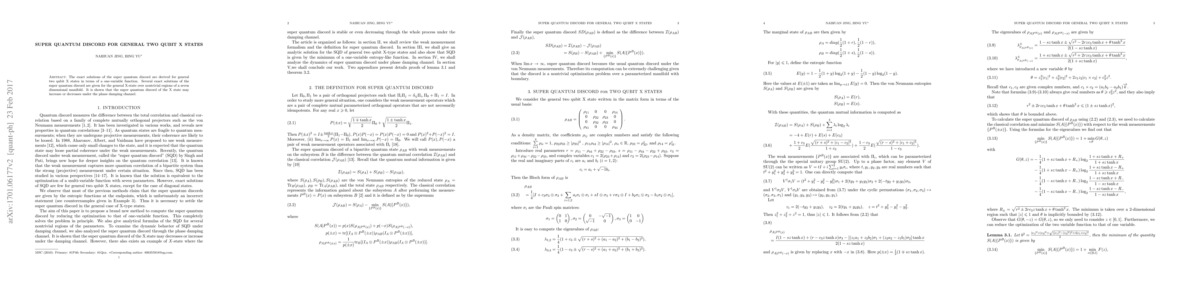 This paper derives exact solutions for super quantum discord in general two-qubit X states, represented as a one-variable function. It demonstrates how the super quantum discord can vary under the phase damping channel, showing both increases and decreases.