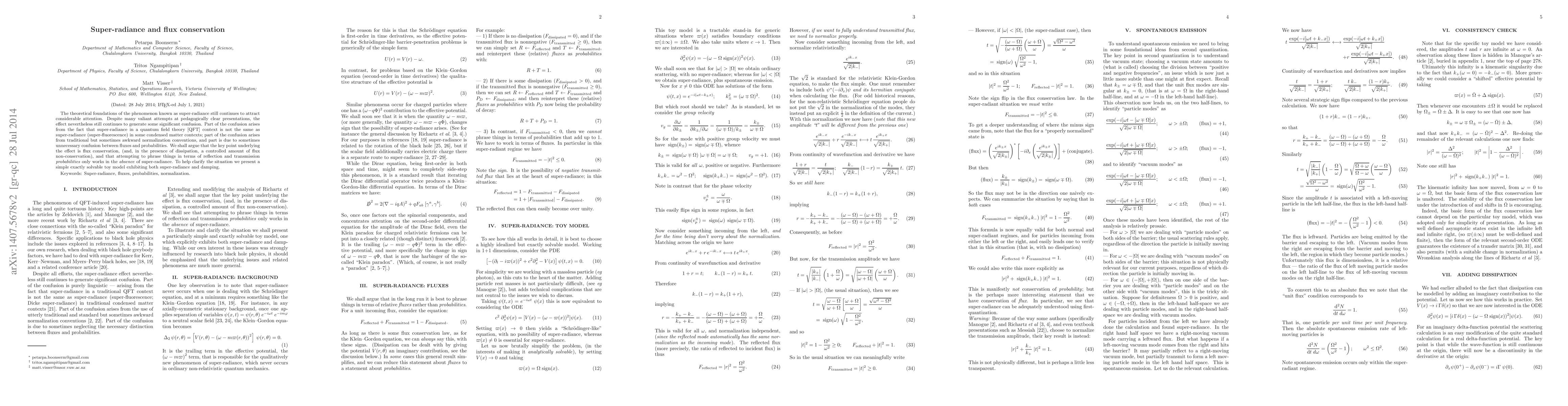 This paper addresses the ongoing confusion surrounding super-radiance, emphasizing flux conservation as the central concept, and contrasts its quantum field theory context with condensed matter interpretations. It introduces a simple toy model to illustrate these principles and clarify the phenomenon.