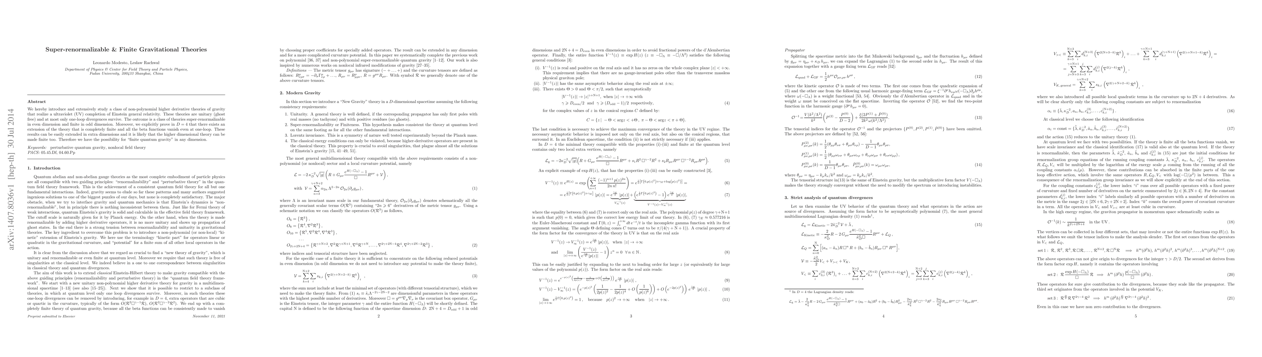 We hereby introduce and extensively study a class of non-polynomial higher derivative theories of gravity that realize a ultraviolet (UV) completion of Einstein general relativity. These theories are unitary (ghost free) and at most only one-loop divergences survive. The outcome is a class of theories super-renormalizable in even dimension and finite in odd dimension. Moreover, we explicitly prove in D=4 that there exists an extension of the theory that is completely finite and all the beta functions vanish even at one-loop. These results can be easily extended in extra dimensions and it is likely that the higher dimensional theory can be made finite too. Therefore we have the possibility for "finite quantum gravity" in any dimension.
