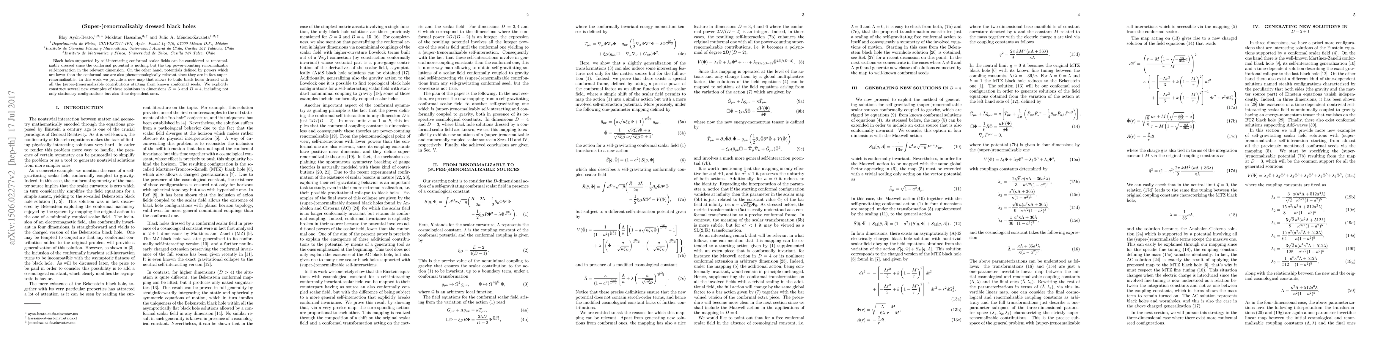 Black holes supported by self-interacting conformal scalar fields can be considered as renormalizably dressed since the conformal potential is nothing but the top power-counting renormalizable self-interaction in the relevant dimension. On the other hand, potentials defined by powers which are lower than the conformal one are also phenomenologically relevant since they are in fact super-renormalizable. In this work we provide a new map that allows to build black holes dressed with all the (super-)renormalizable contributions starting from known conformal seeds. We explicitly construct several new examples of these solutions in dimensions $D=3$ and $D=4$, including not only stationary configurations but also time-dependent ones.