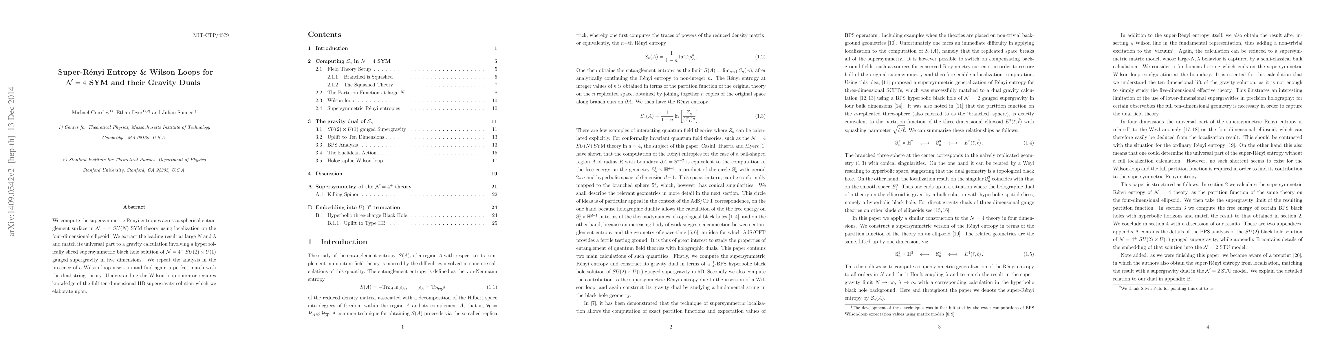 This paper computes supersymmetric Rényi entropies in N=4 SU(N) SYM theory and matches their universal part to a gravity dual in five-dimensional gauged supergravity, including effects of Wilson loop insertions, revealing a perfect correspondence with string theory calculations.