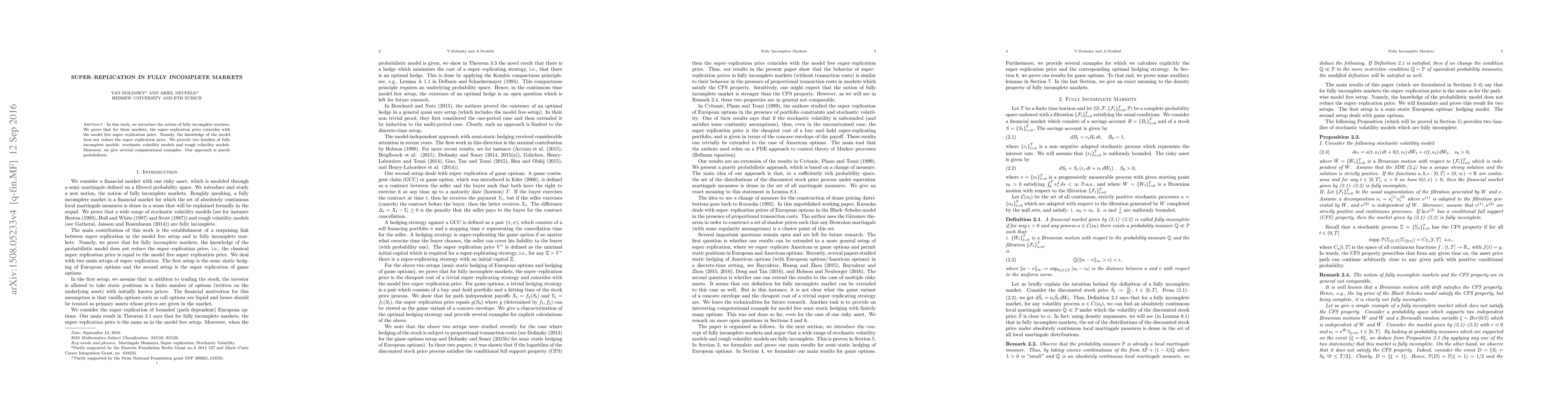 This paper introduces fully incomplete markets where the super-replication price equals the model-free super-replication price, regardless of the underlying model. It presents stochastic and rough volatility models as examples and uses a purely probabilistic approach for computational examples.