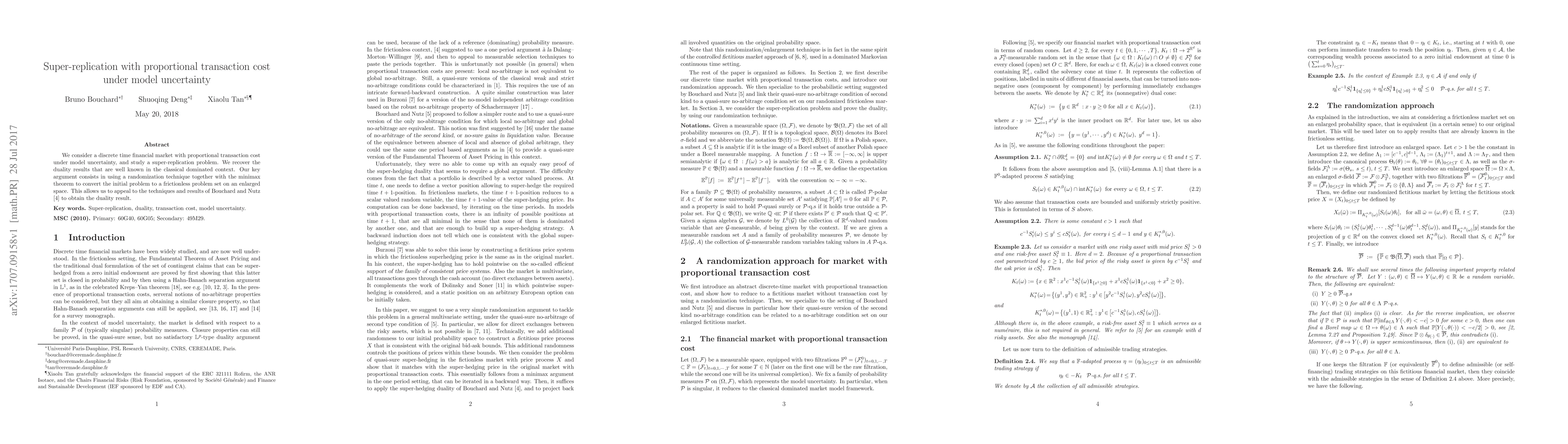 This paper addresses a super-replication problem in a discrete time financial market with proportional transaction costs under model uncertainty. It employs a randomization technique and the minimax theorem to transform the problem into a frictionless one, enabling the application of existing duality results from Bouchard and Nutz (2015).