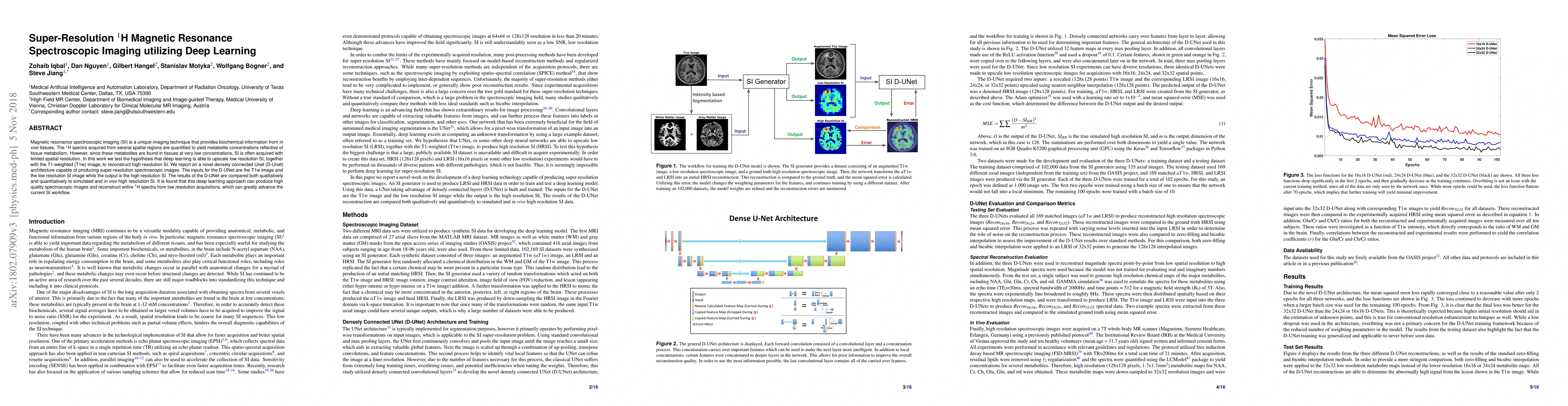 A deep learning-based approach using U-Net architecture is proposed to reconstruct high-resolution spectroscopic images from low-resolution images and T1-weighted images.