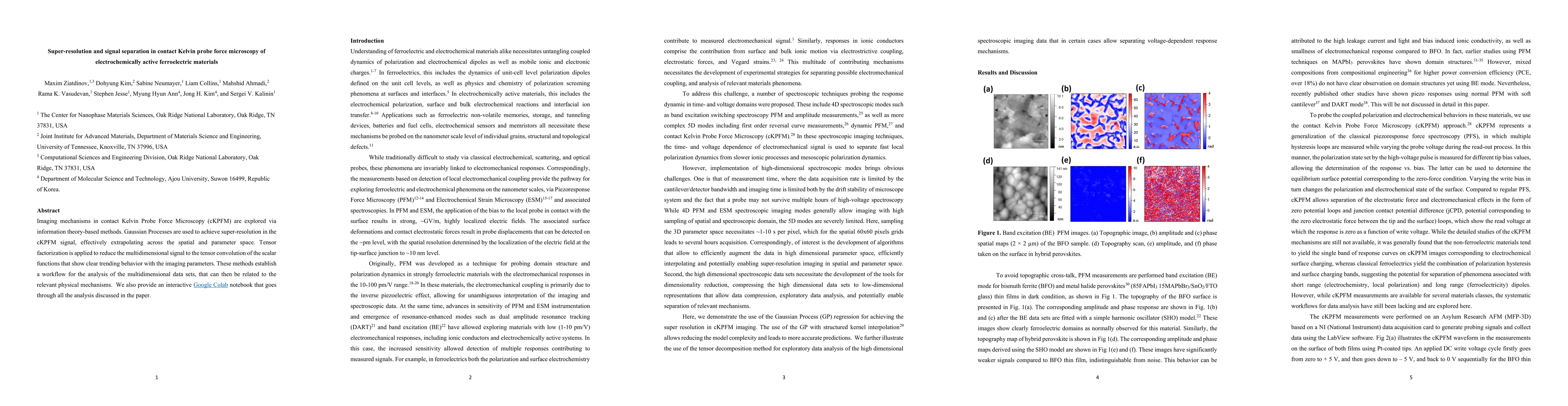 Researchers used Gaussian Processes and tensor matrix factorization to improve the resolution and signal separation in contact Kelvin Probe Force Microscopy, allowing for better analysis of electrochemically active ferroelectric materials.
