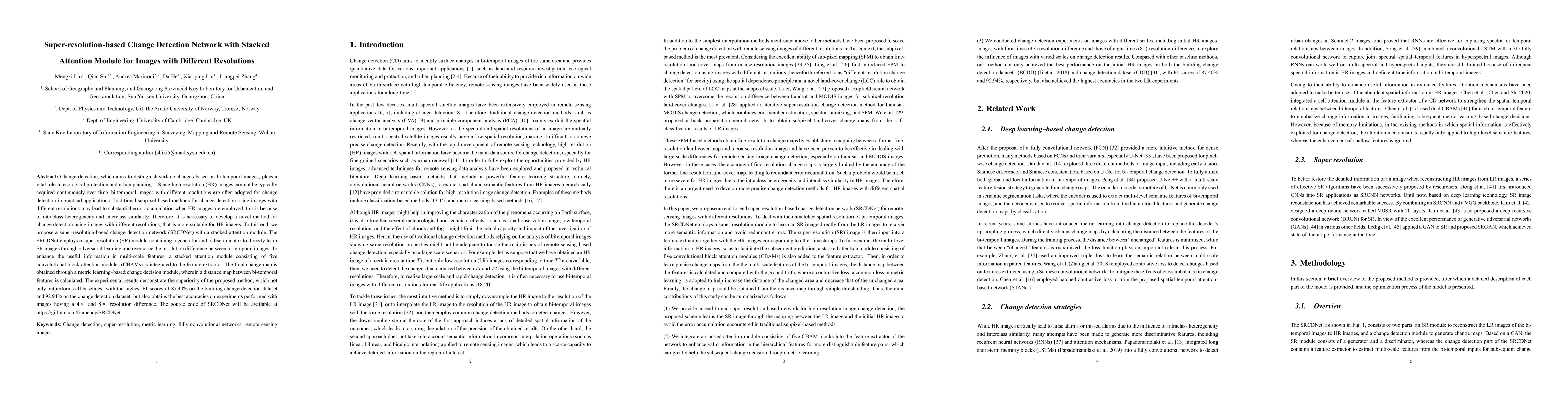 A new AI method called SRCDNet improves change detection in images with different resolutions, outperforming previous methods and achieving high accuracy even when the resolution difference is 4x or 8x.